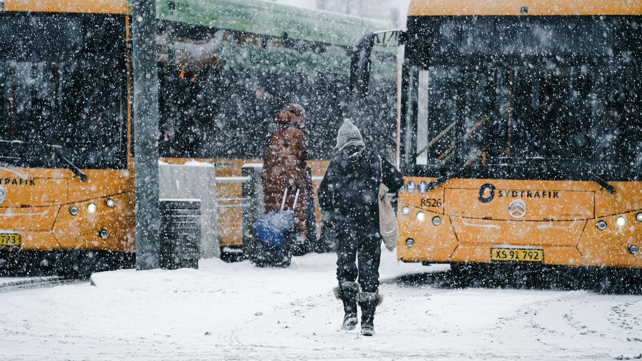 Både skolebusruter og bybusser er påvirket af glatte veje torsdag og fredag. Følg med på sydtrafik.dk.