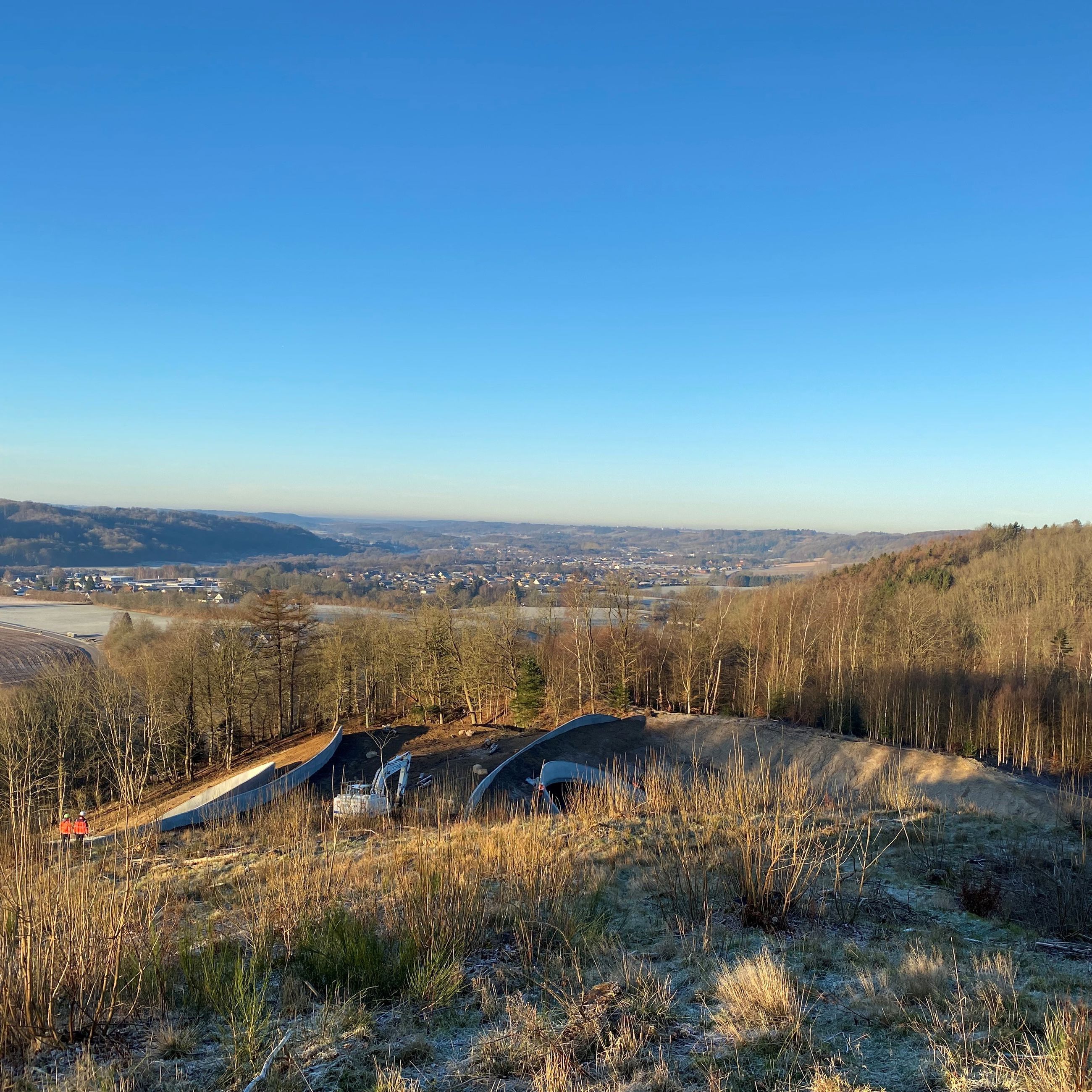 - Vejen skærer igennem et udfordrende landskab. Når vejen står færdig, vil den være den vej i Danmark, der har den største stigning over så lang en strækning. Hældningen bliver 7% på det stejleste sted.