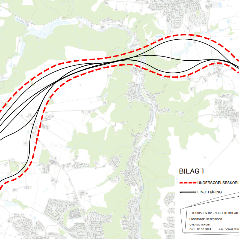Ved byrådets møde i marts 2024 blev der øremærket 3 mio. kr. til at vurdere konsekvenser for miljø og natur omkring den undersøgelseskorridor, som der er politisk flertal for. (se kortet).