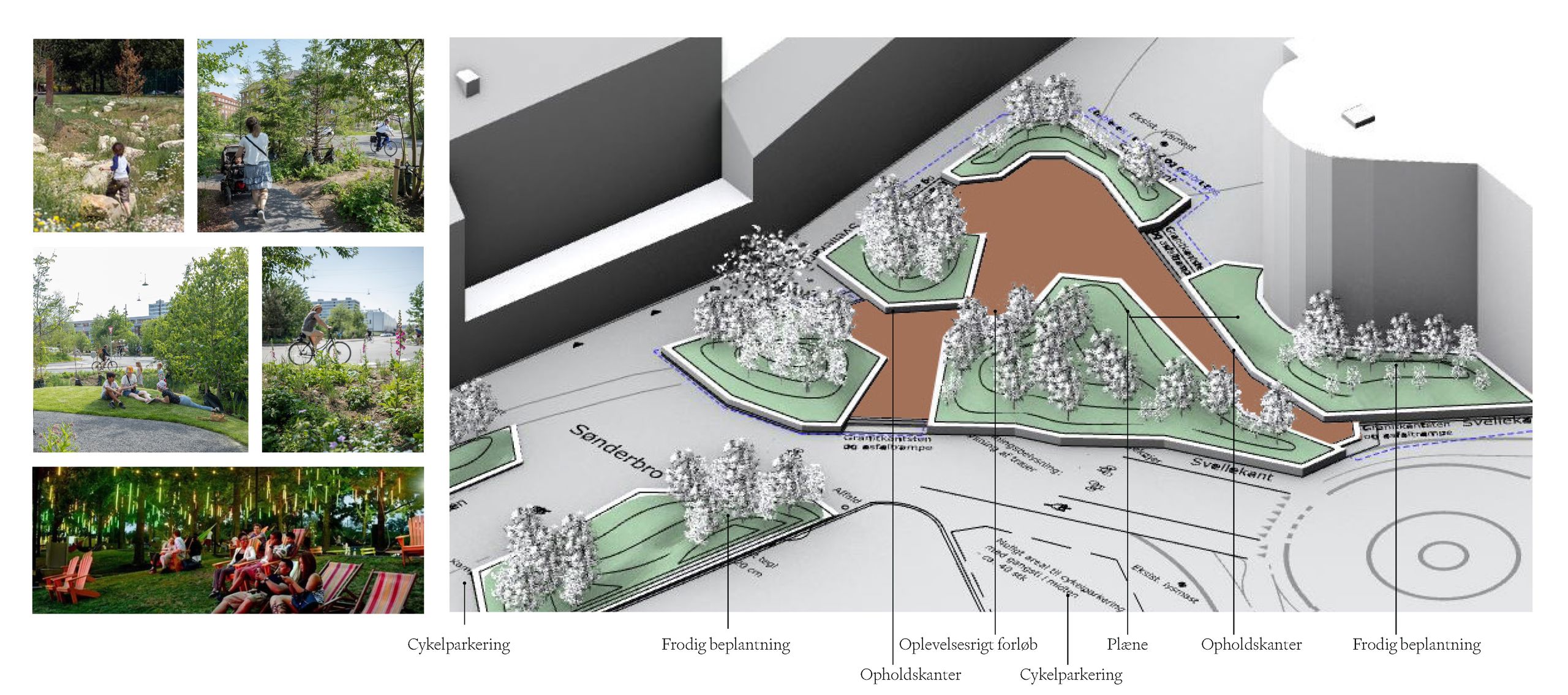 Her afprøves et byrum med mange grønne elementer, der står i kontrakt til det granitbefæstede Søndertorv. Der er fokus på: Bynatur, læ og afskærmninger samt sanser og oplevelser.