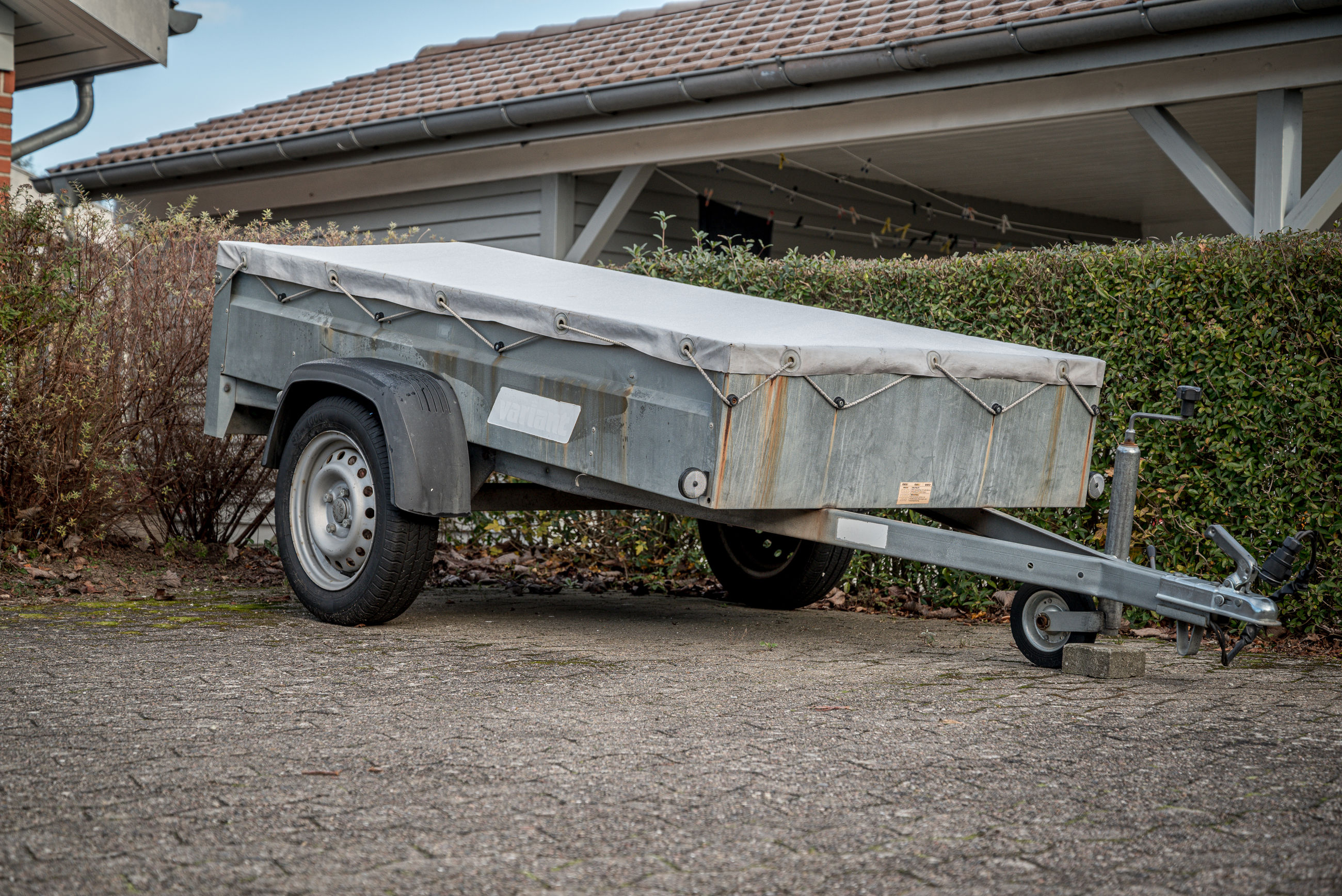 En lille trailer på max 500 kg uden bremser kræver hverken forsikring eller syn - og er derfor nem at dele, uden at nogen hæfter eller skal stå for opfølgning.
