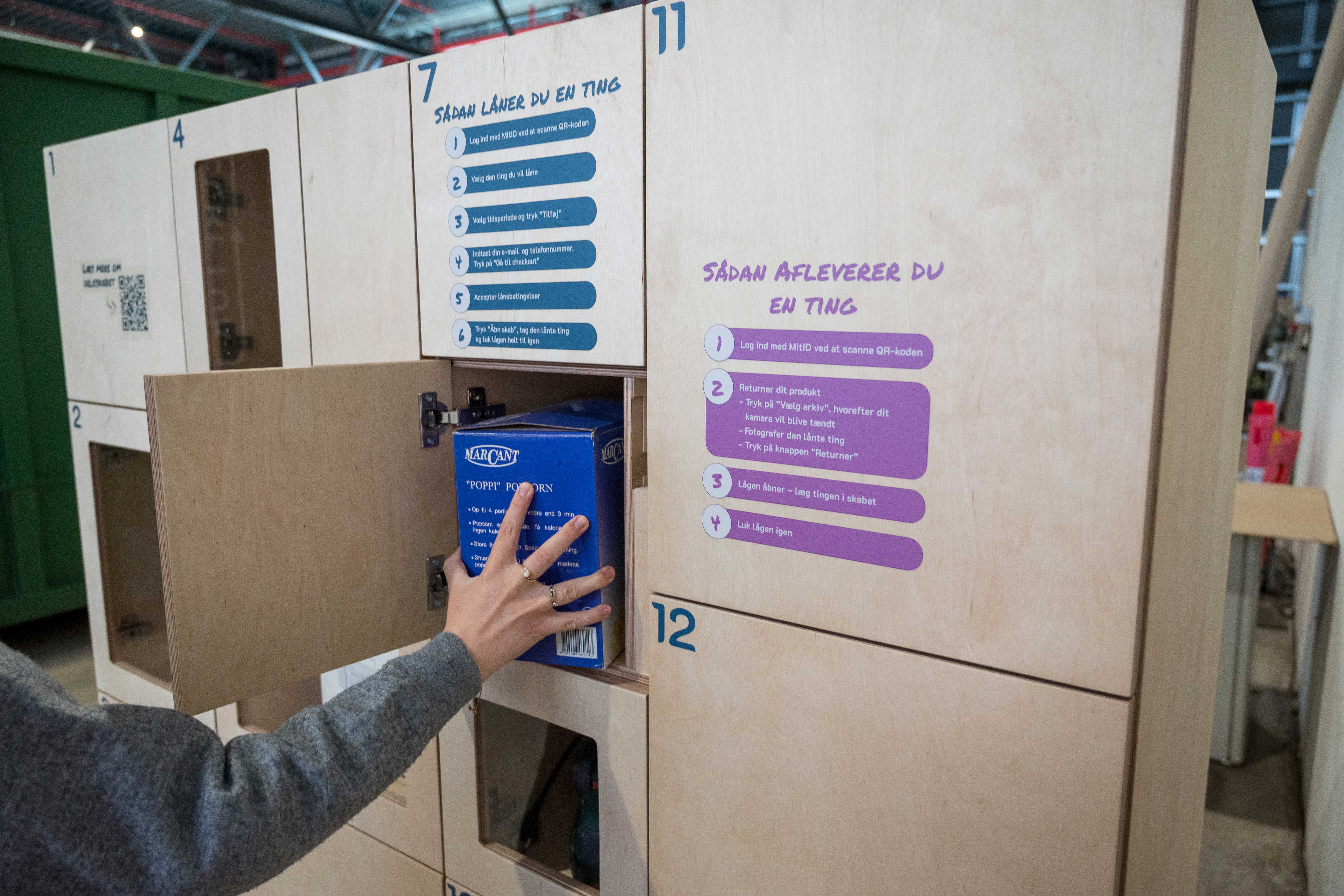 I Deleskabet kan man låne alt fra værktøj og køkkenudstyr til kreative redskaber ved at logge ind med MitID - lidt ligesom man låner bøger på biblioteket. Alle tingene i skabet stammer fra RessourceCenter Vejle, hvor de er indleveret til genbrug, testet og gjort klar til at få nyt liv i hænderne på andre.