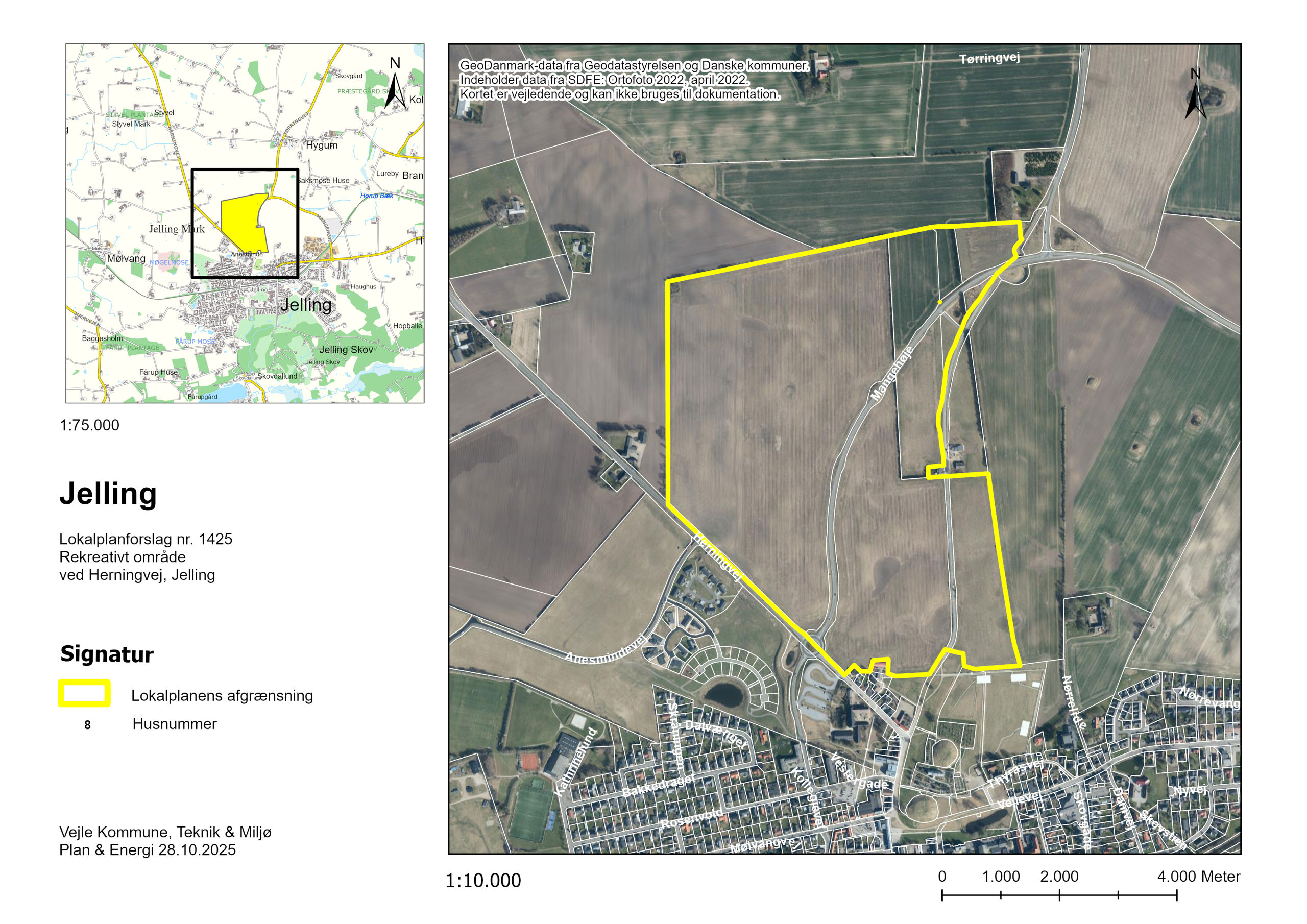 Byrådet har den 25.03.2026 vedtaget lokalplan nr. 1425 Rekreativt område ved Herningvej, Jelling og tillæg nr. 2 til Vejle Kommuneplan 2025-2037.