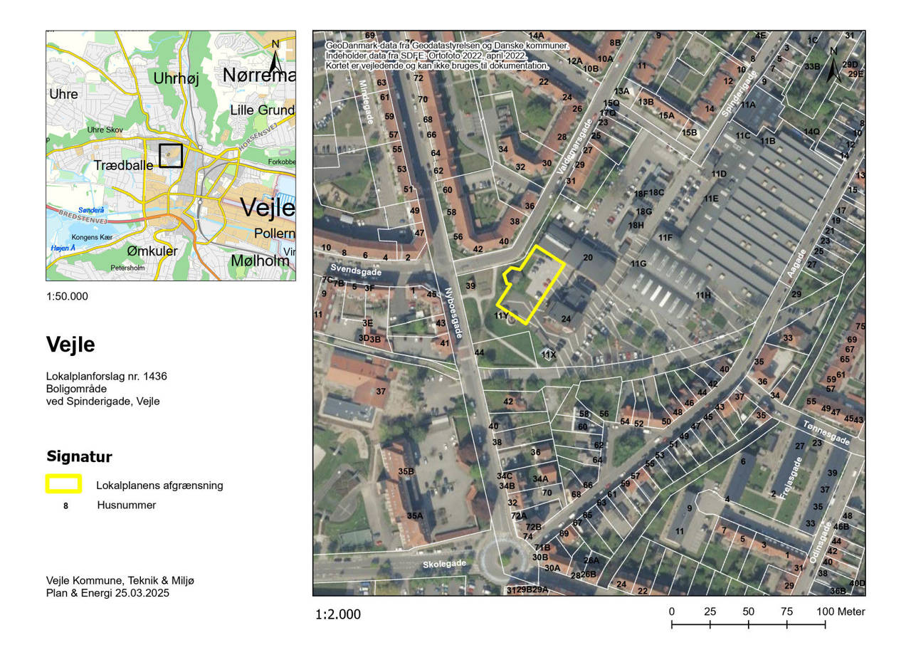 Byrådet har den 25.06.2025 vedtaget forslag til lokalplan nr. 1436 Boligområde ved Spinderigade, Vejle og tillæg nr. 10 til Vejle Kommuneplan 2021-2037.