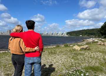 Det er fascinerende at studere Bølgen og Fjordenhus, synes João, som er uddannet arkitekt i Brasilien. Og skylinen med fjorden foran er næsten magisk, synes de begge.