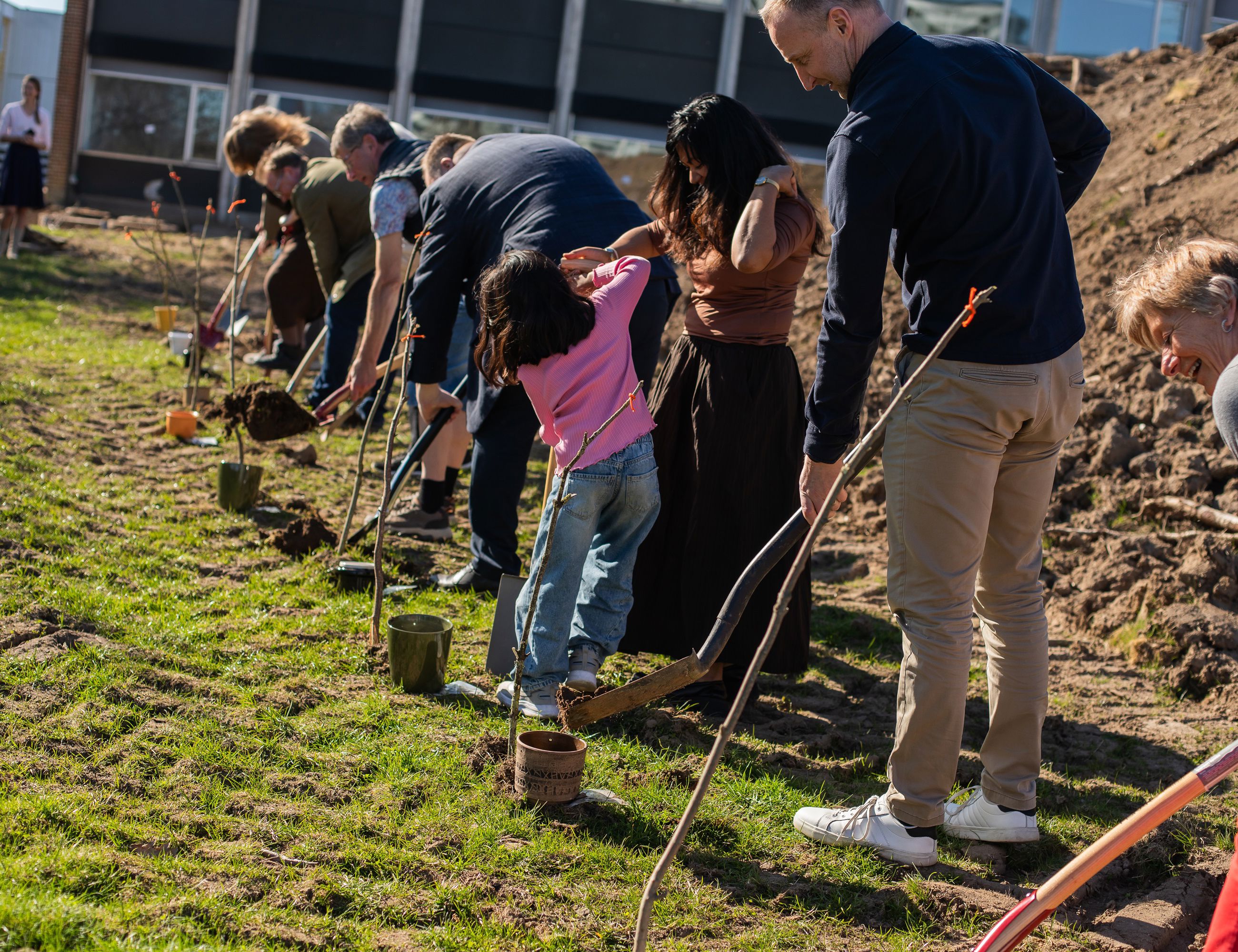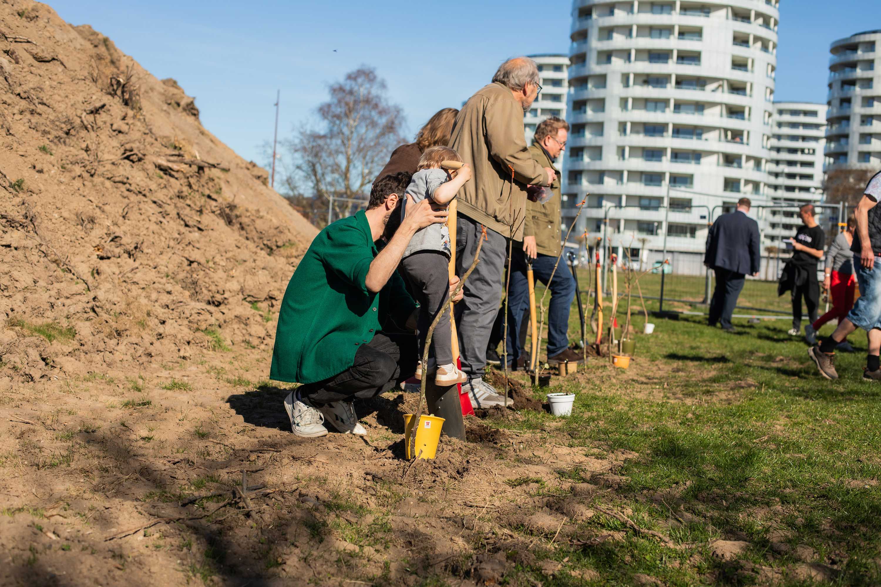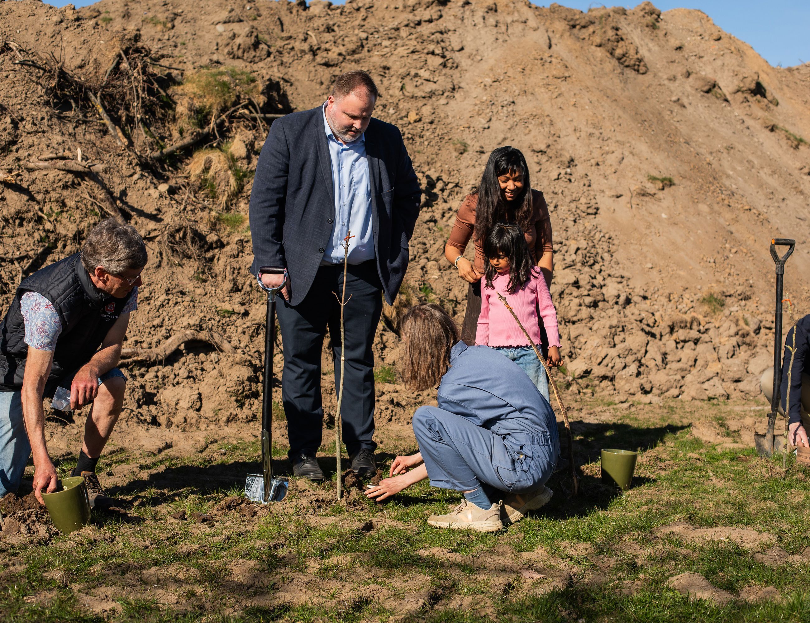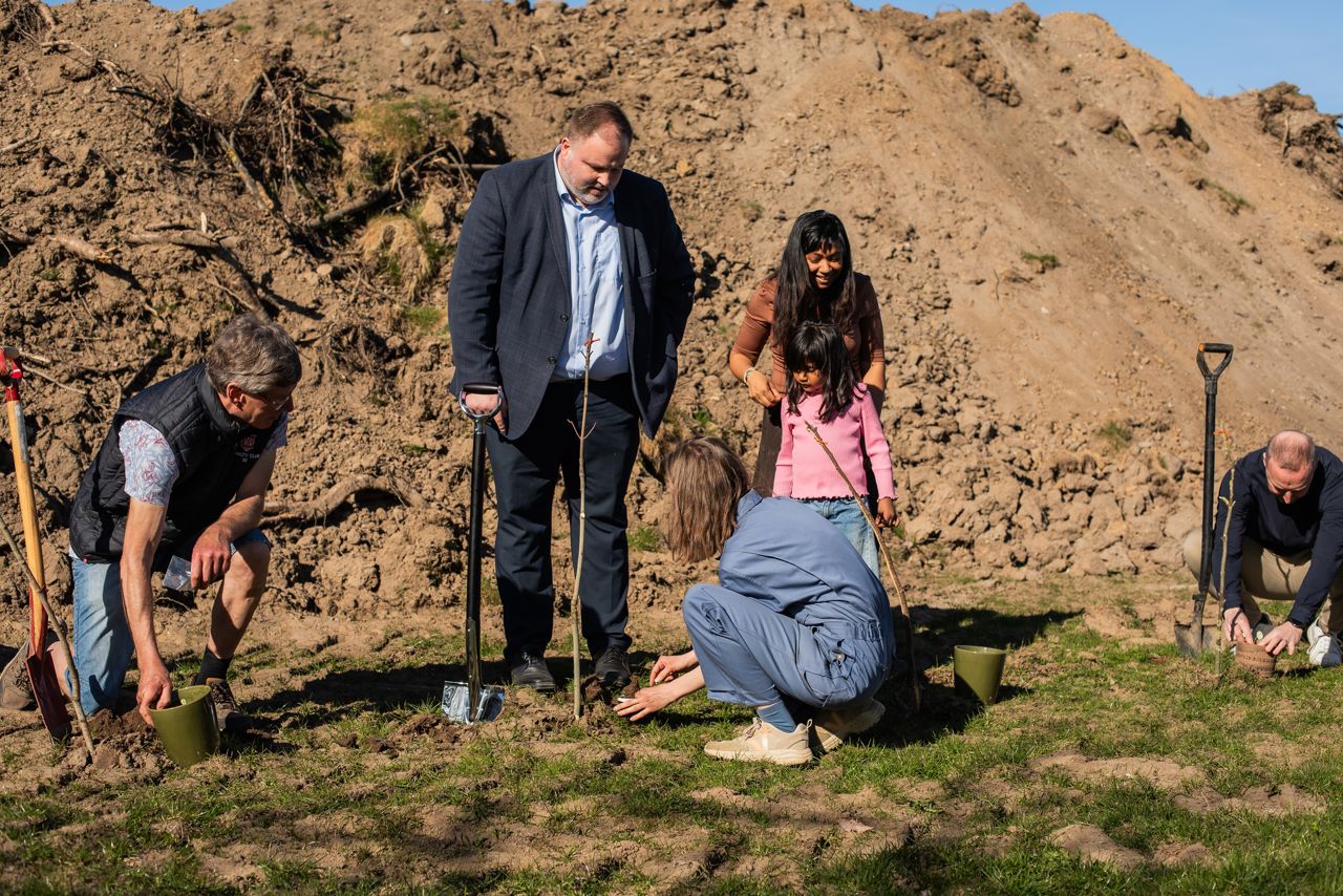 Foran dem stod 10 urtepotter. I hver af dem var der et bøgetræ, som skulle plantes i dagens anledning - og efterfølgende passes og plejes de indtil indvielsen af byens nye samlingspunkt i efteråret 2026.