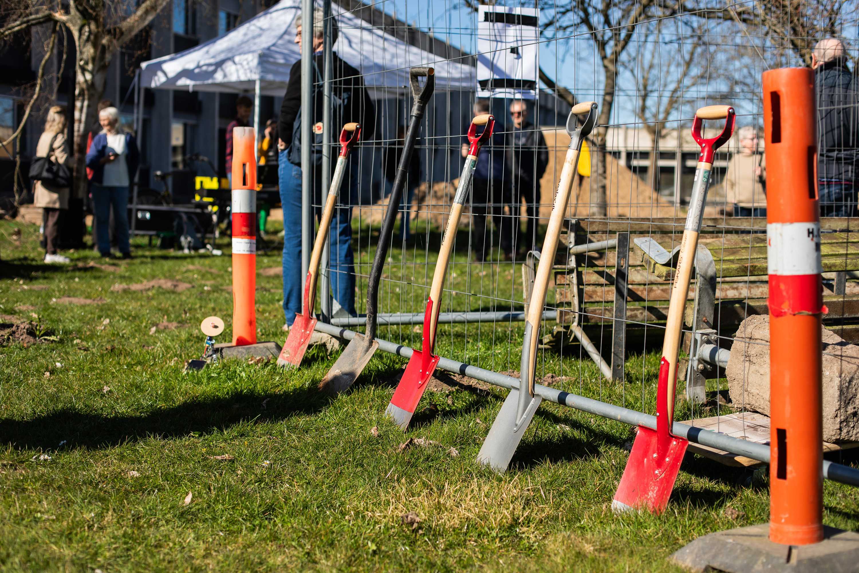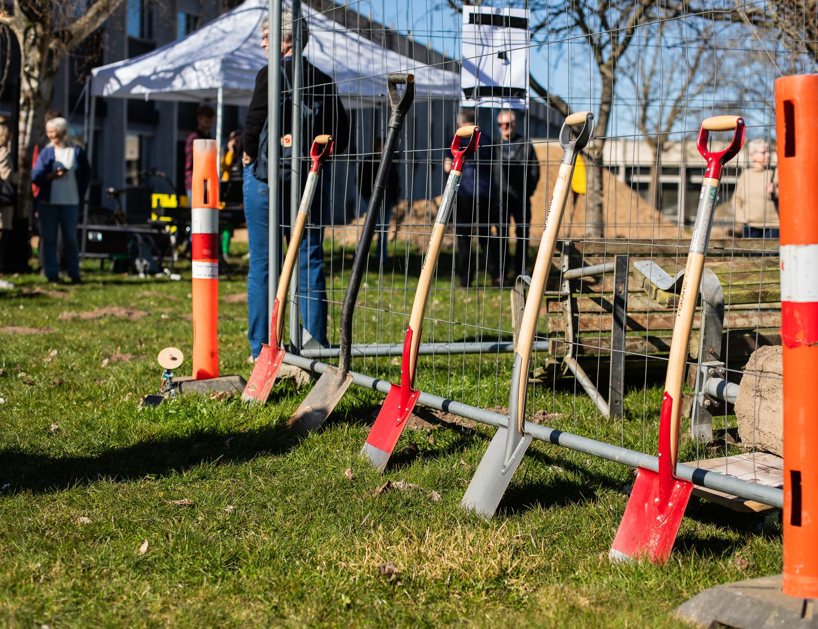 Under forårssolen blev der taget 10 spadestik i går. 10 borgere blev nemlig inviteret op, og sammen tog de et første spadestik for det kommende bibliotek og kulturhus.