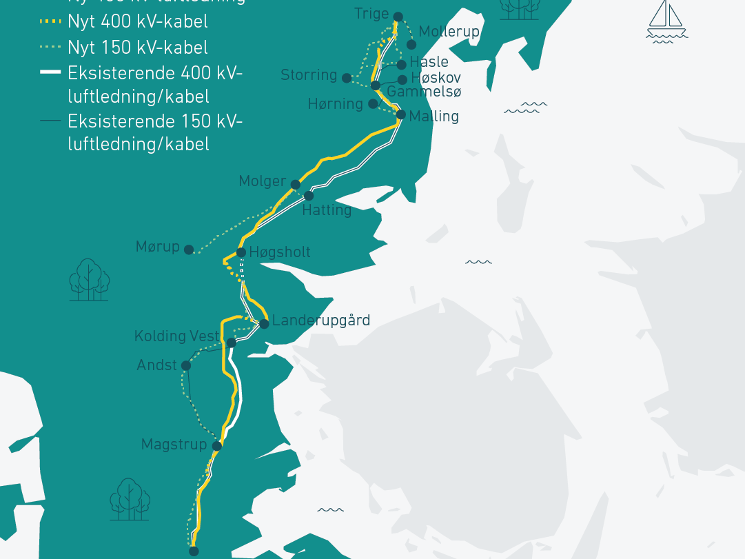 Elnettet i Østjylland skal fremtidssikres, og Energinet planlægger derfor at bygge en helt ny ”el-motorvej” mellem Aarhus og Aabenraa. Projektet skal styrke forsyningssikkerheden og gøre det muligt at transportere mere grøn energi på tværs af regionen.