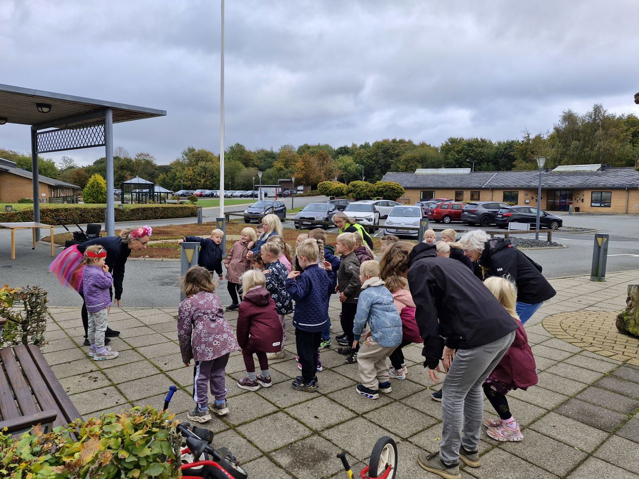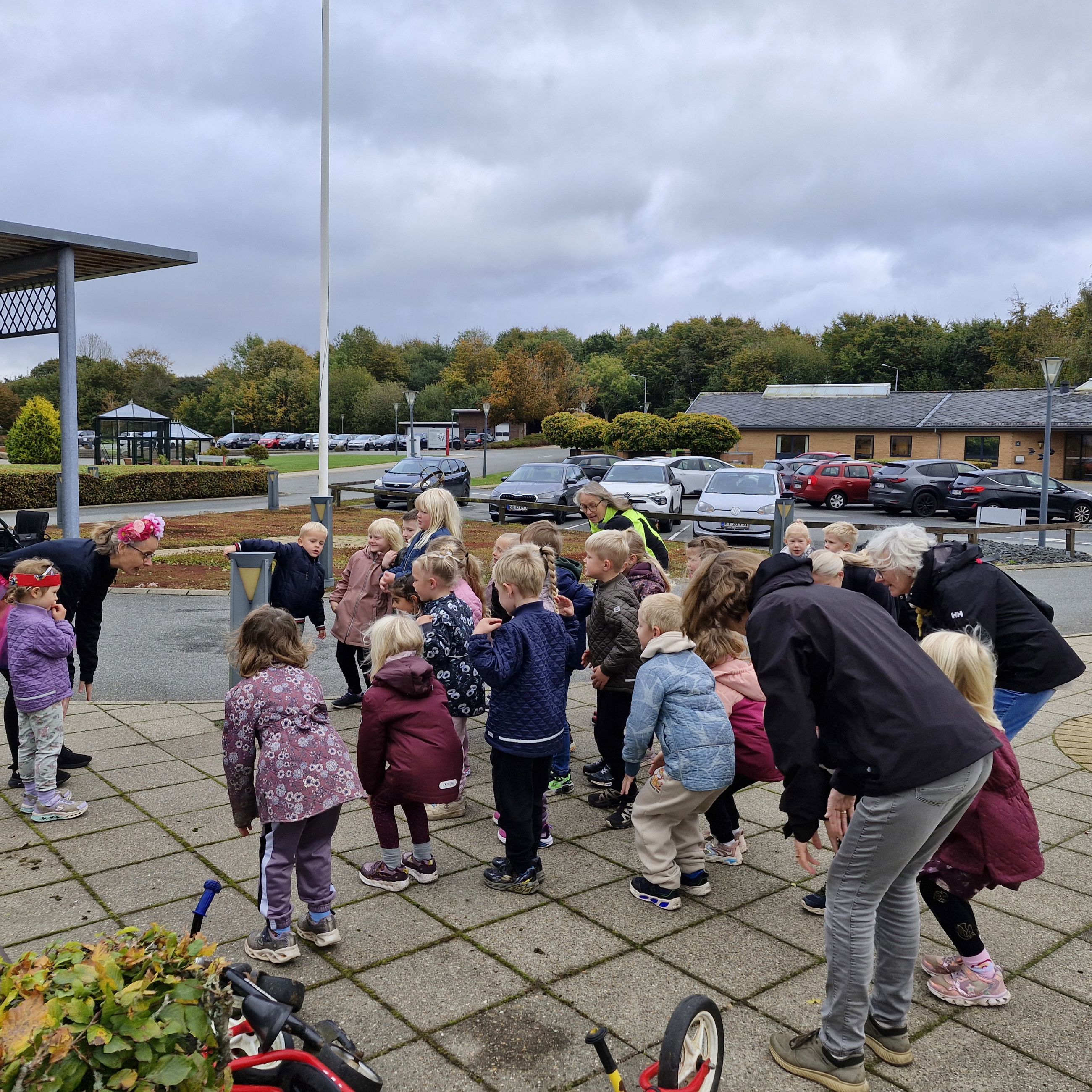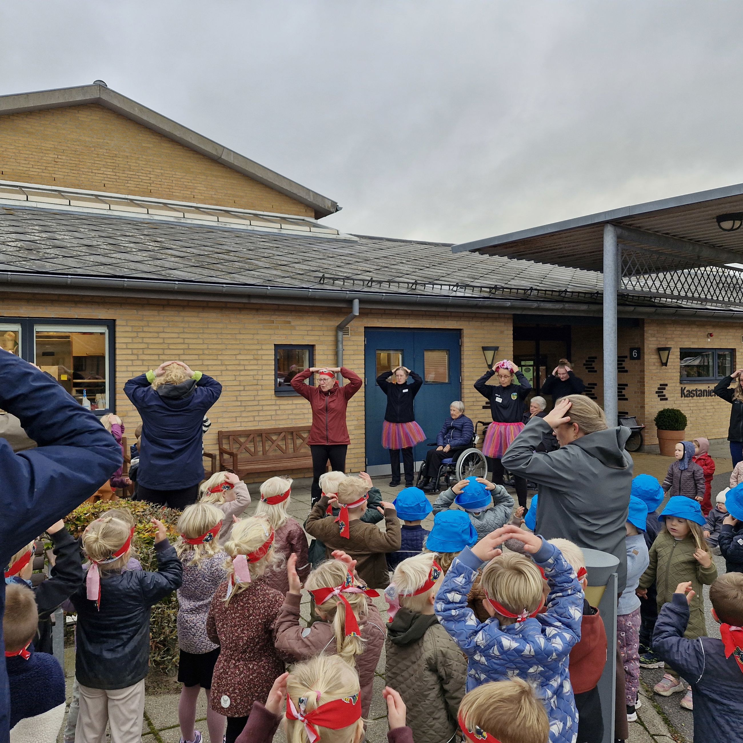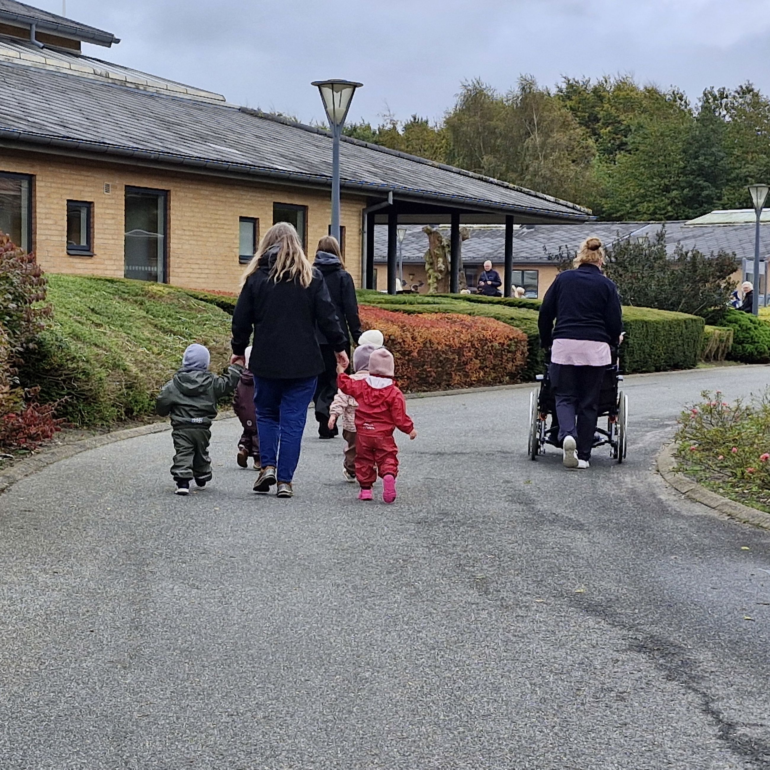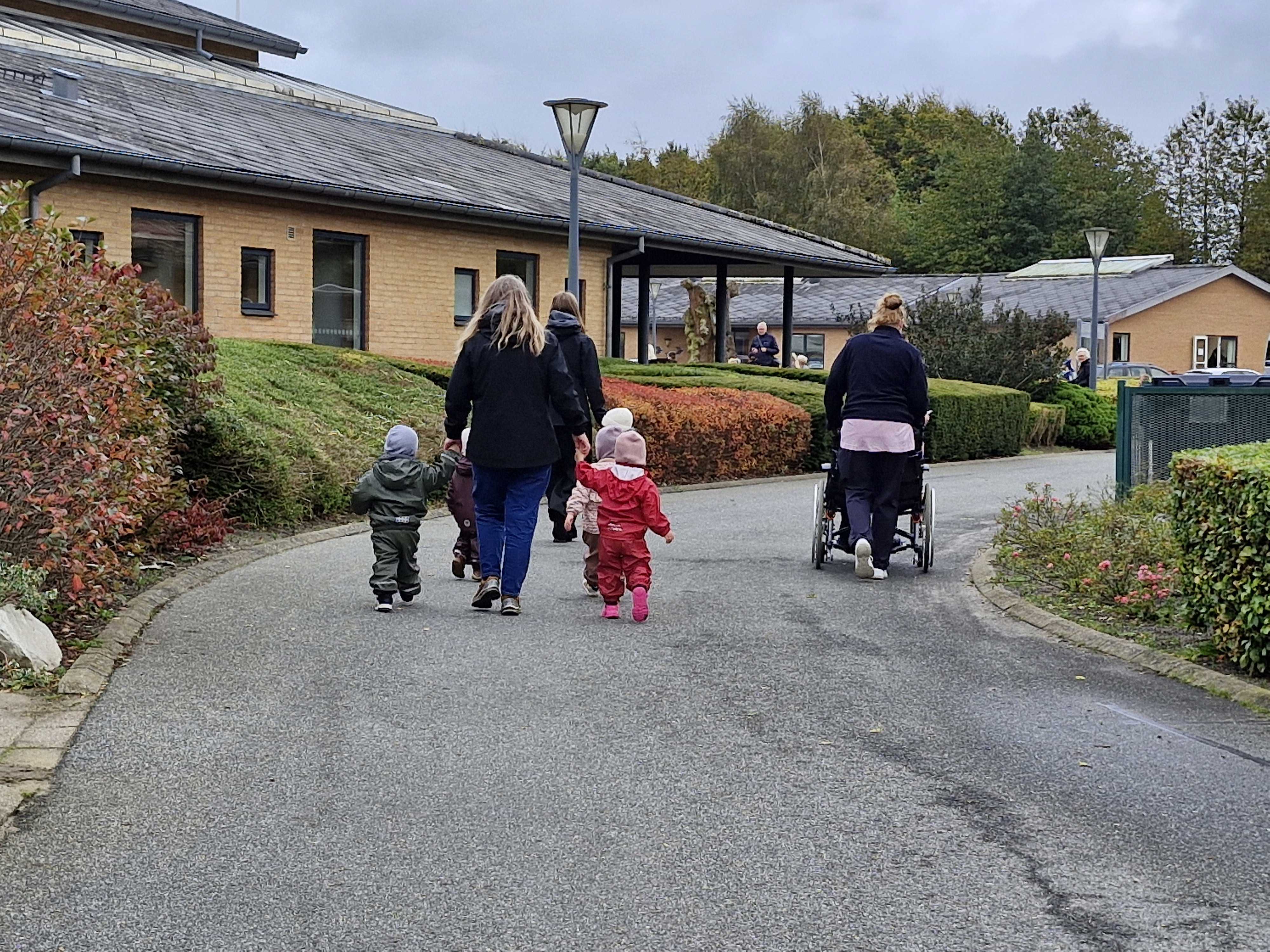 Den invitation tog hele 140 dagpleje- og børnehavebørn i mod, og de fik hurtigt selskab af flere beboere fra centret, der gik med eller så på.