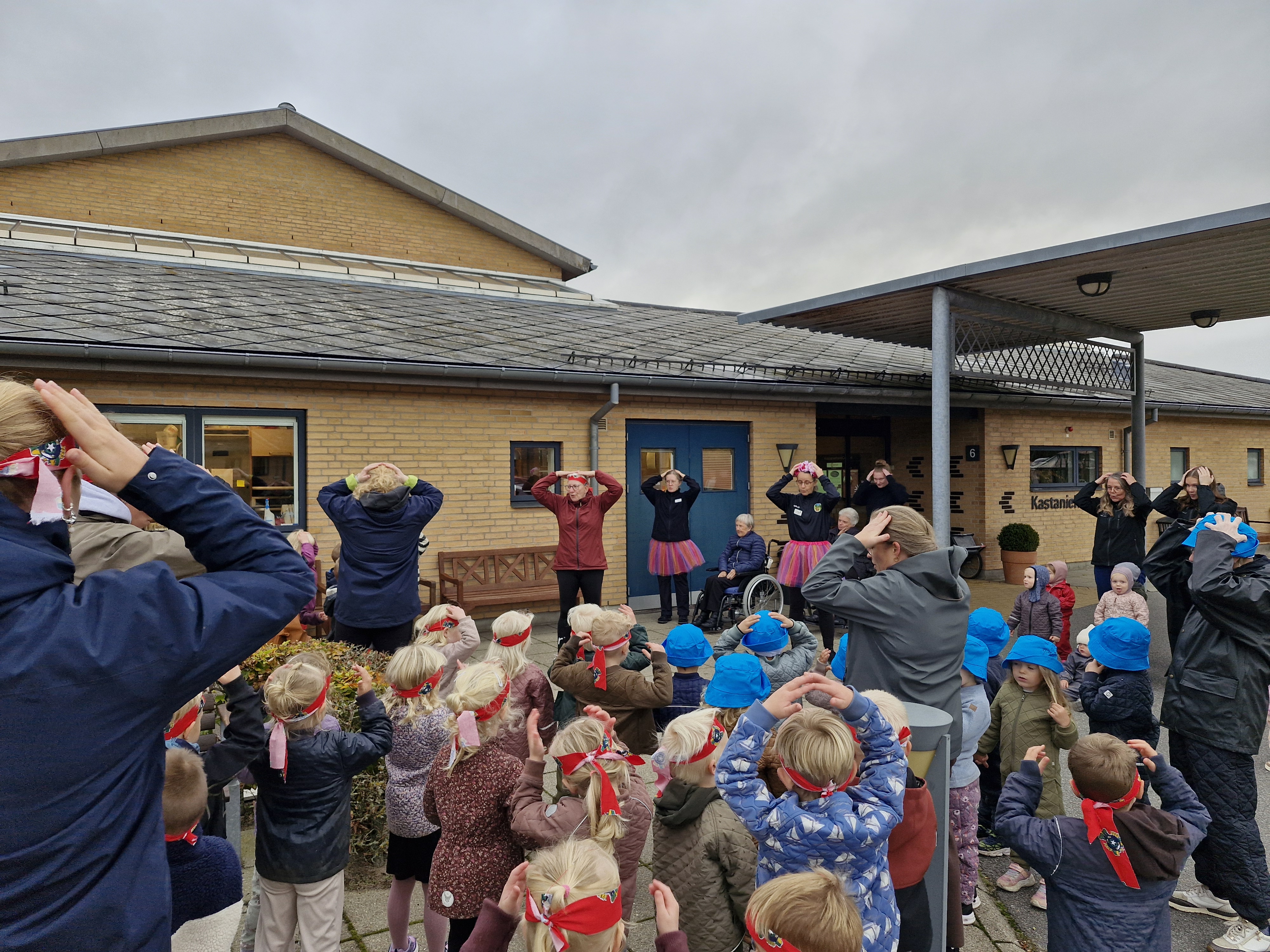 Den invitation tog hele 140 dagpleje- og børnehavebørn i mod, og de fik hurtigt selskab af flere beboere fra centret, der gik med eller så på.