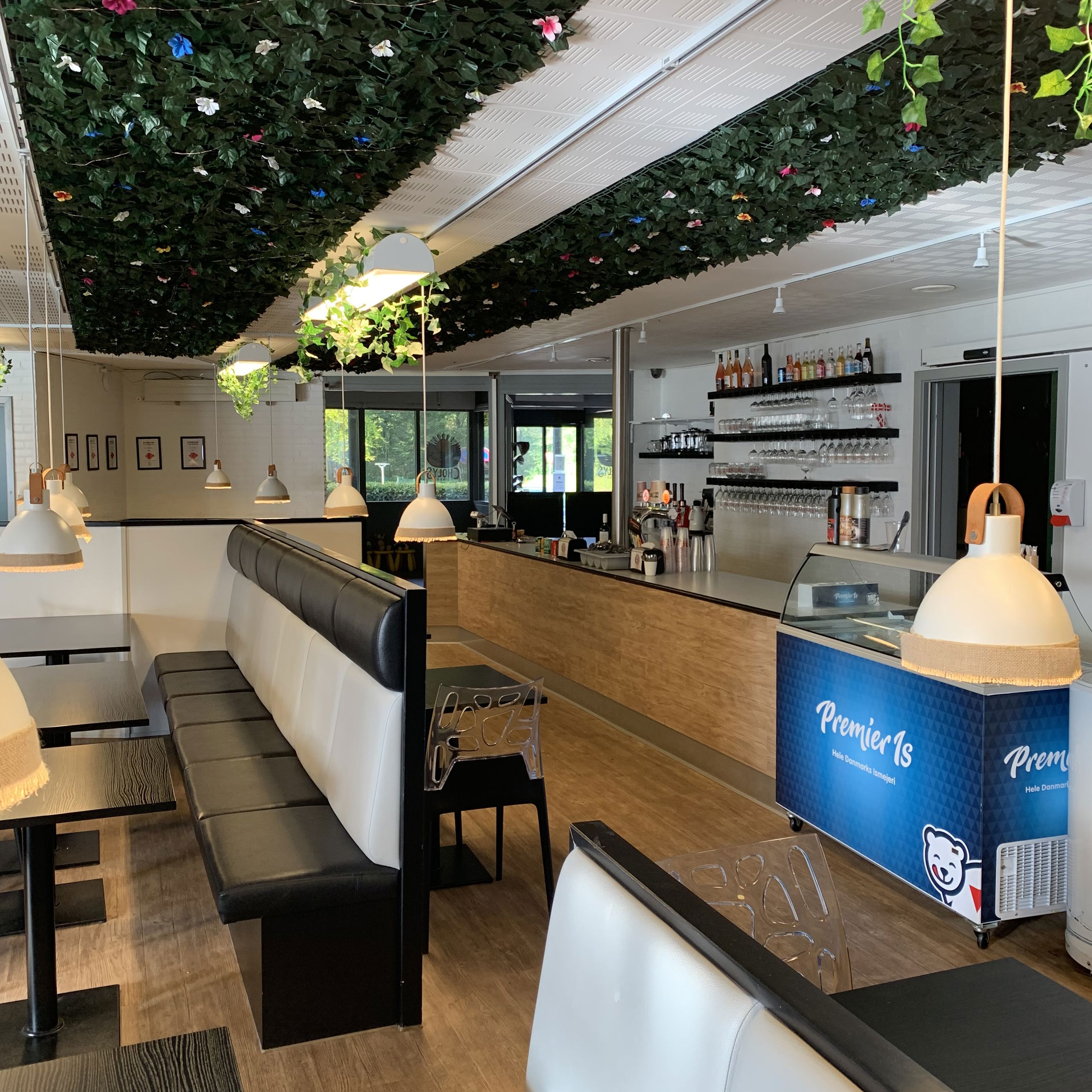 Med cafeteriaet er det muligt at bespise gæster, både fra campingpladsen og friluftsbadet, som ligger i forlængelse af pladsen.