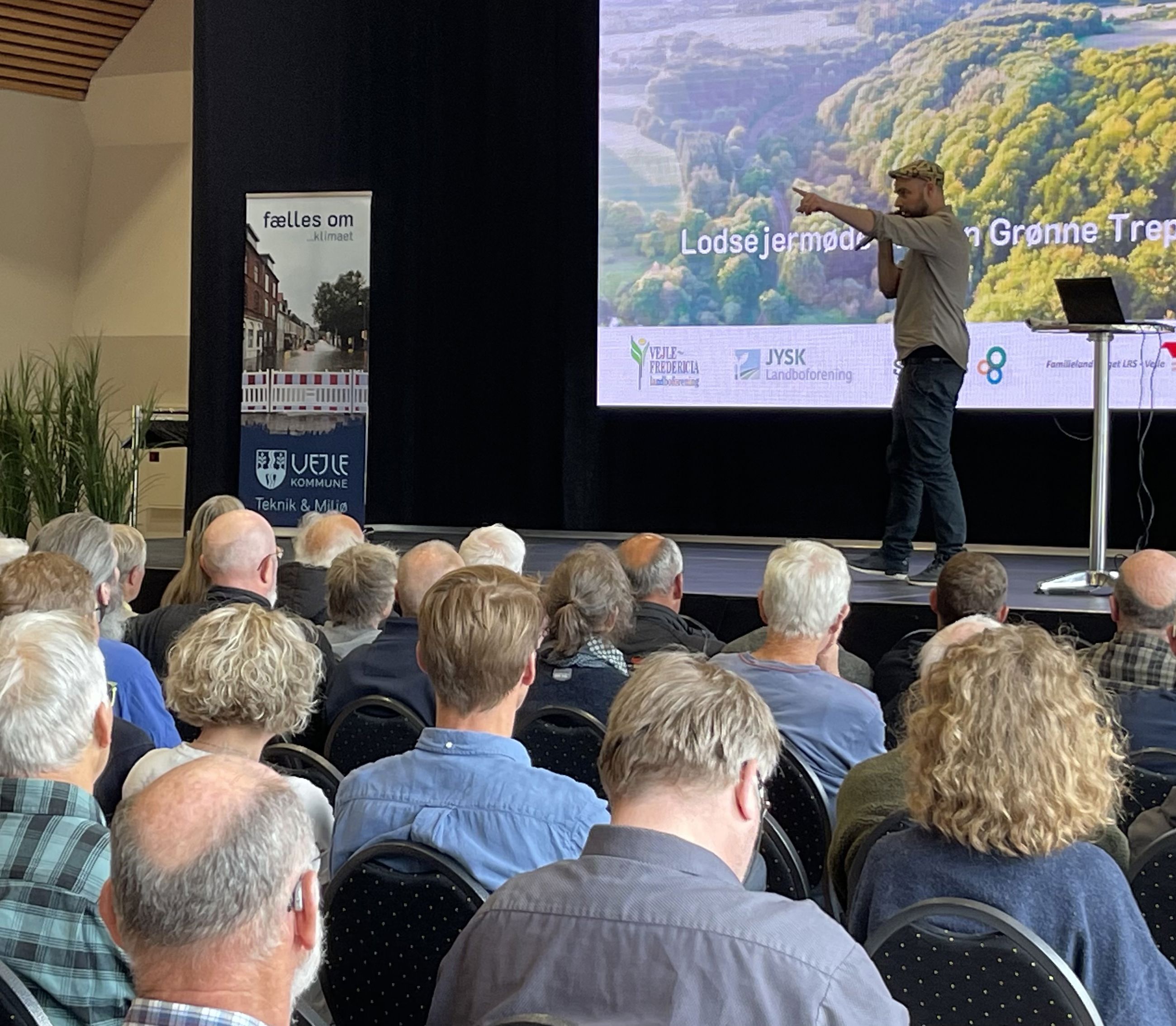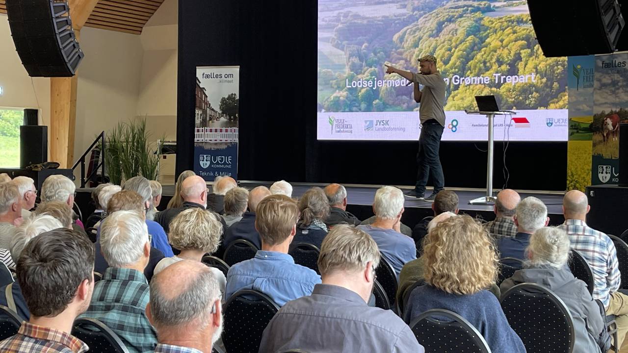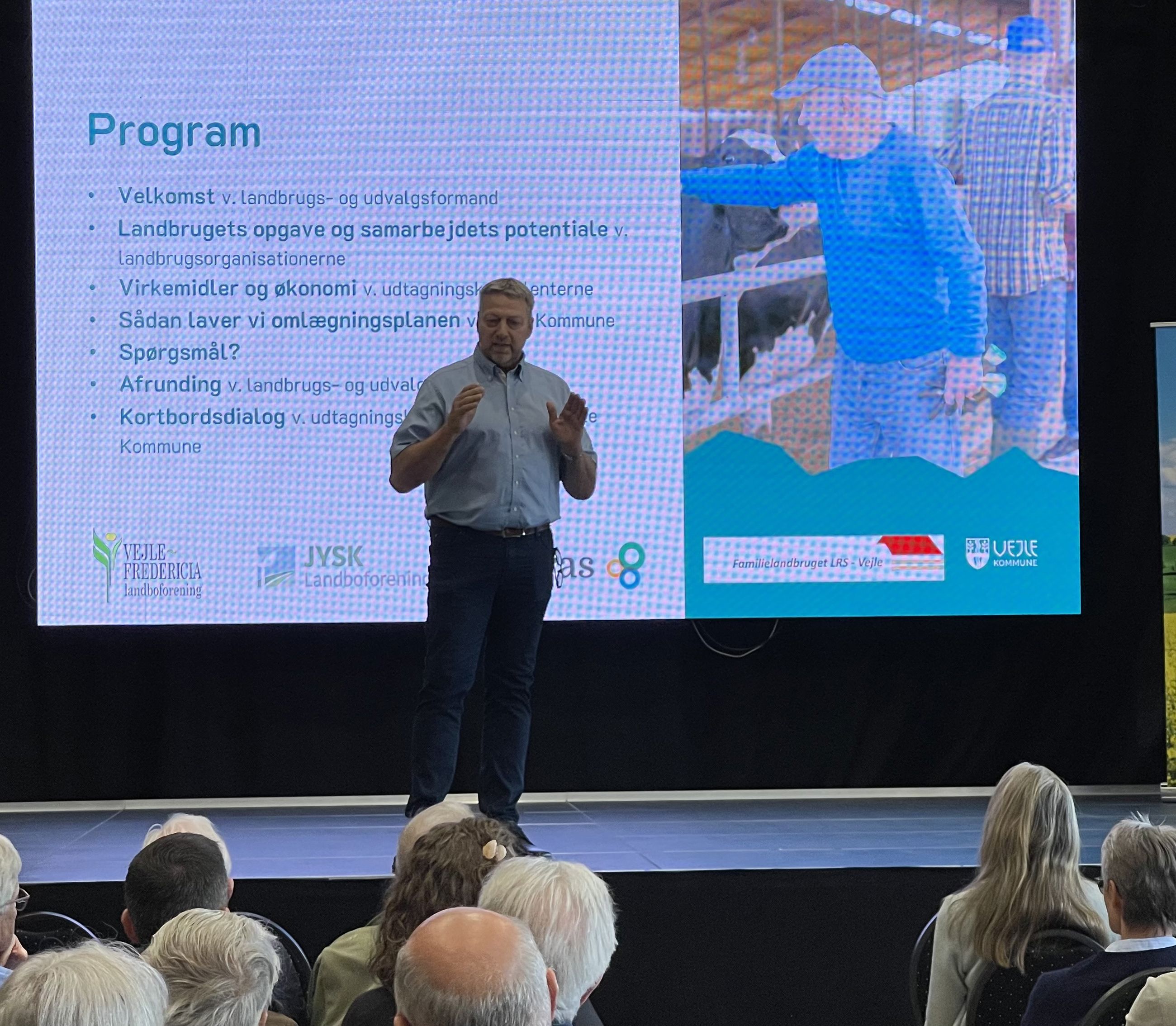 Opfordringen fra arrangørerne af lodsejermøderne – de lokale landbrugsorganisationer og Vejle Kommune – lød, at vi klogt og i fællesskab skal løse de mange udfordringer med en af Danmarkshistoriens største arealomlægninger. Vi skal sammen skabe synergier mellem indsatser, der løser flere mål, når vi skal reducere CO2 udslip, kvælstof samt klimasikre og skabe mere natur.