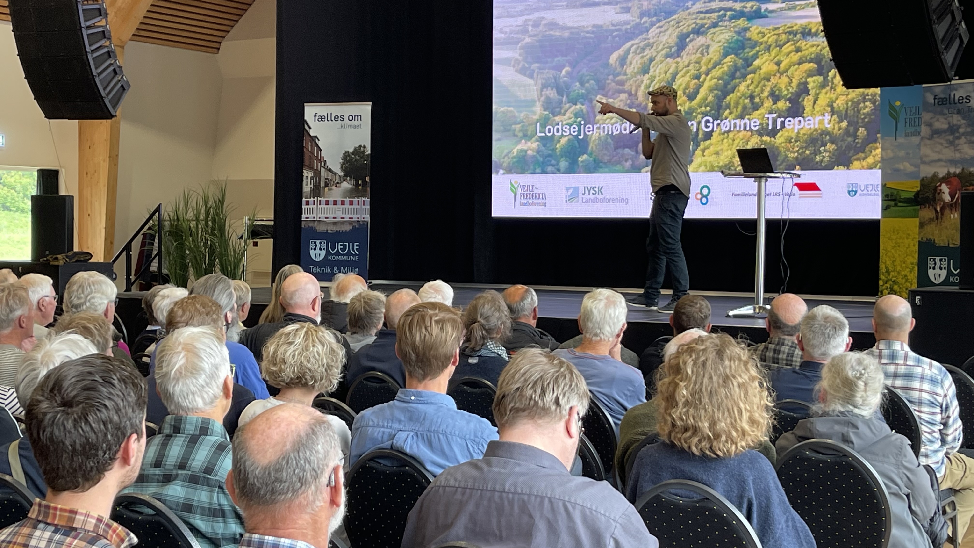 Opfordringen fra arrangørerne af lodsejermøderne – de lokale landbrugsorganisationer og Vejle Kommune – lød, at vi klogt og i fællesskab skal løse de mange udfordringer med en af Danmarkshistoriens største arealomlægninger. Vi skal sammen skabe synergier mellem indsatser, der løser flere mål, når vi skal reducere CO2 udslip, kvælstof samt klimasikre og skabe mere natur.