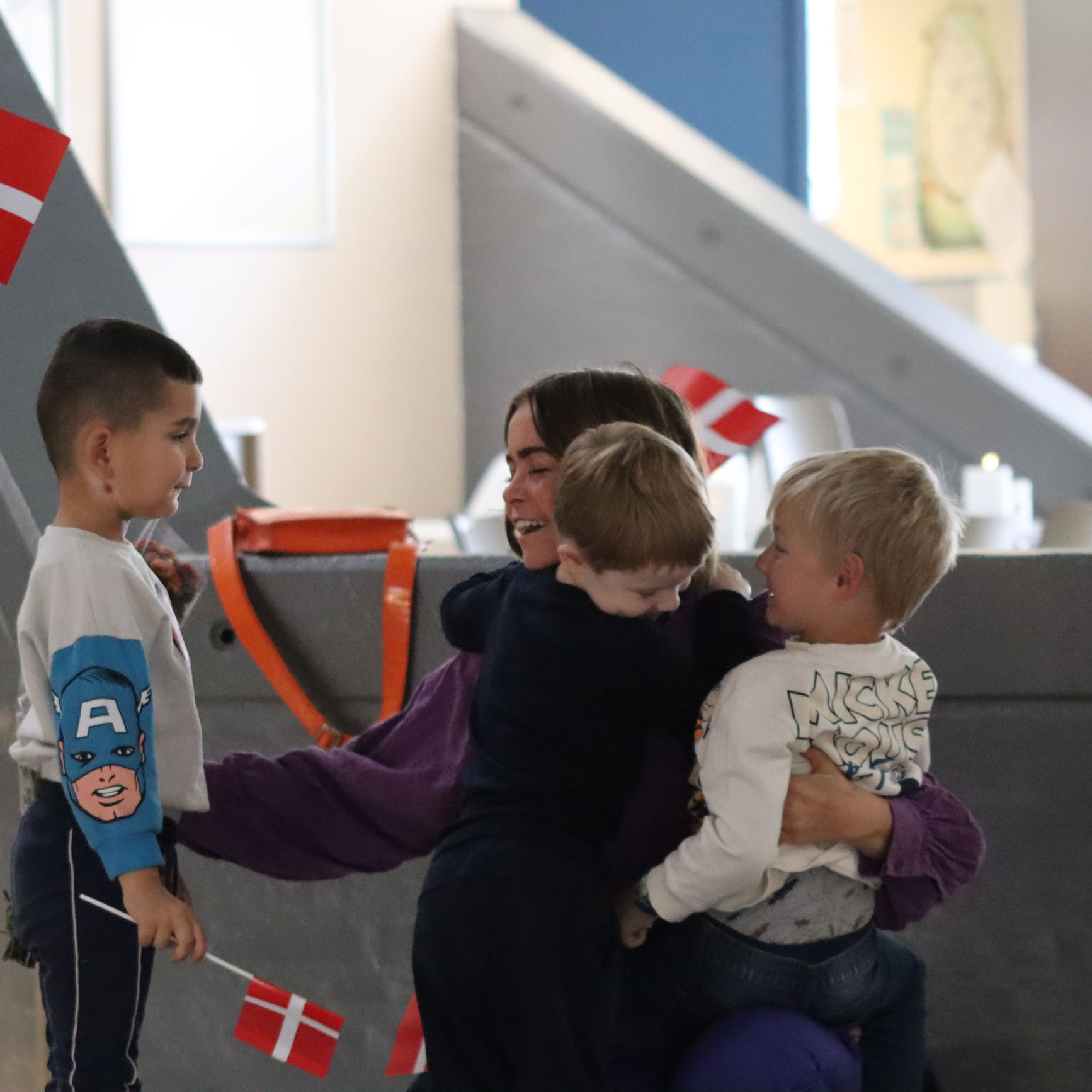 NyhedNår man er Danmarks bedste pædagog, skal der en ordentlig velkomst til. Så det fik Sissel Gøtzsche Johnsen, da hun i dag mødte ind på arbejde i børnehuset Blæksprutten: Alle børnene sad klar med flag i storrummet og sagde tillykke, da Sissel trådte ind. En velkomst, der rørte prisvinderen.