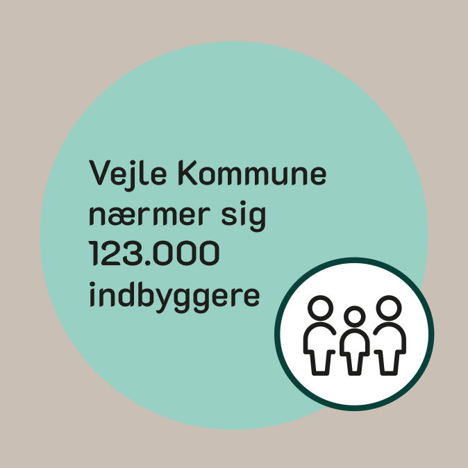 Vejle Kommune er et populært sted at bosætte sig. I starten af 3. kvartal 2025 var der 122.750 borgere bosat i Vejle Kommune, hvilket er en forøgelse på 728 indbyggere siden 3. kvartal 2024.