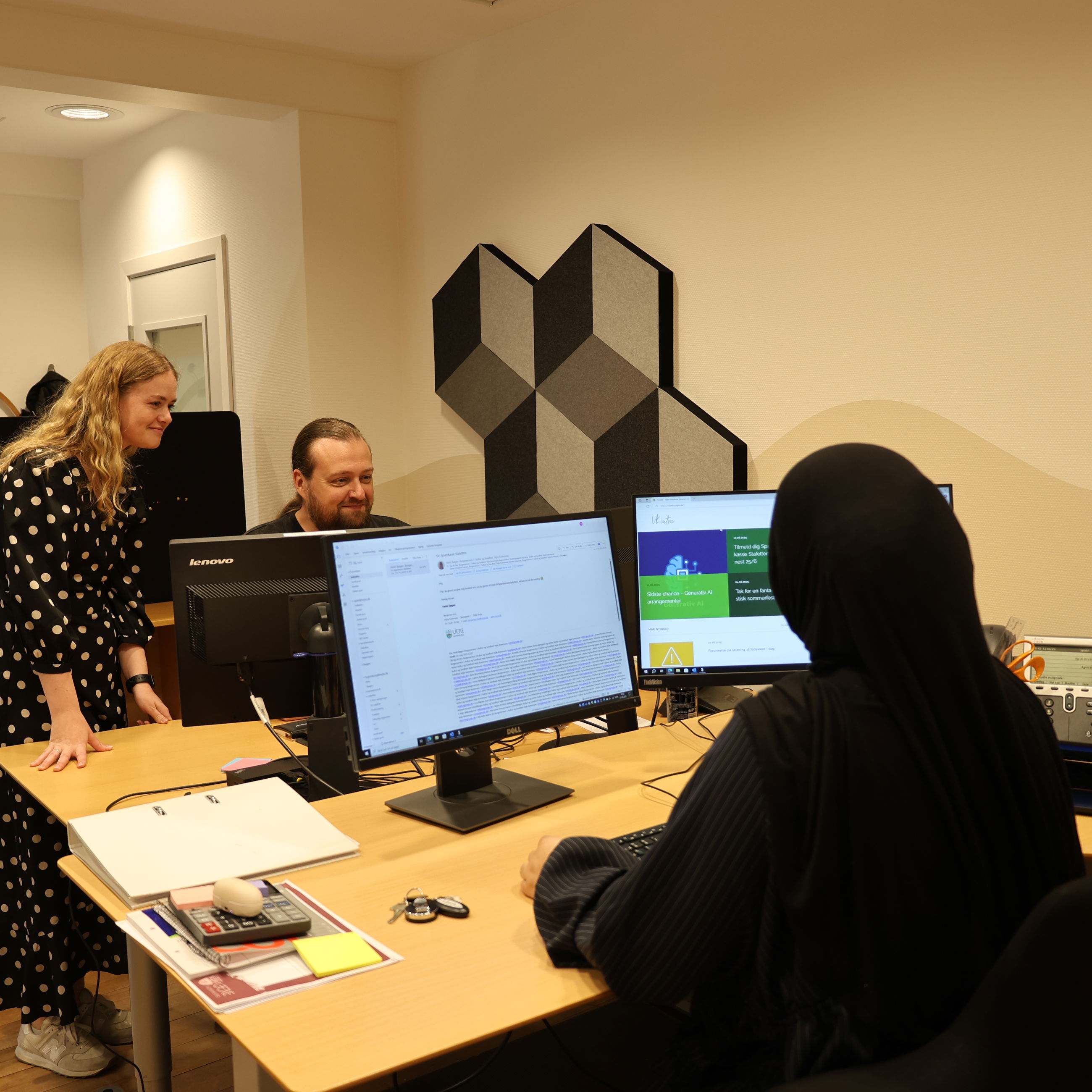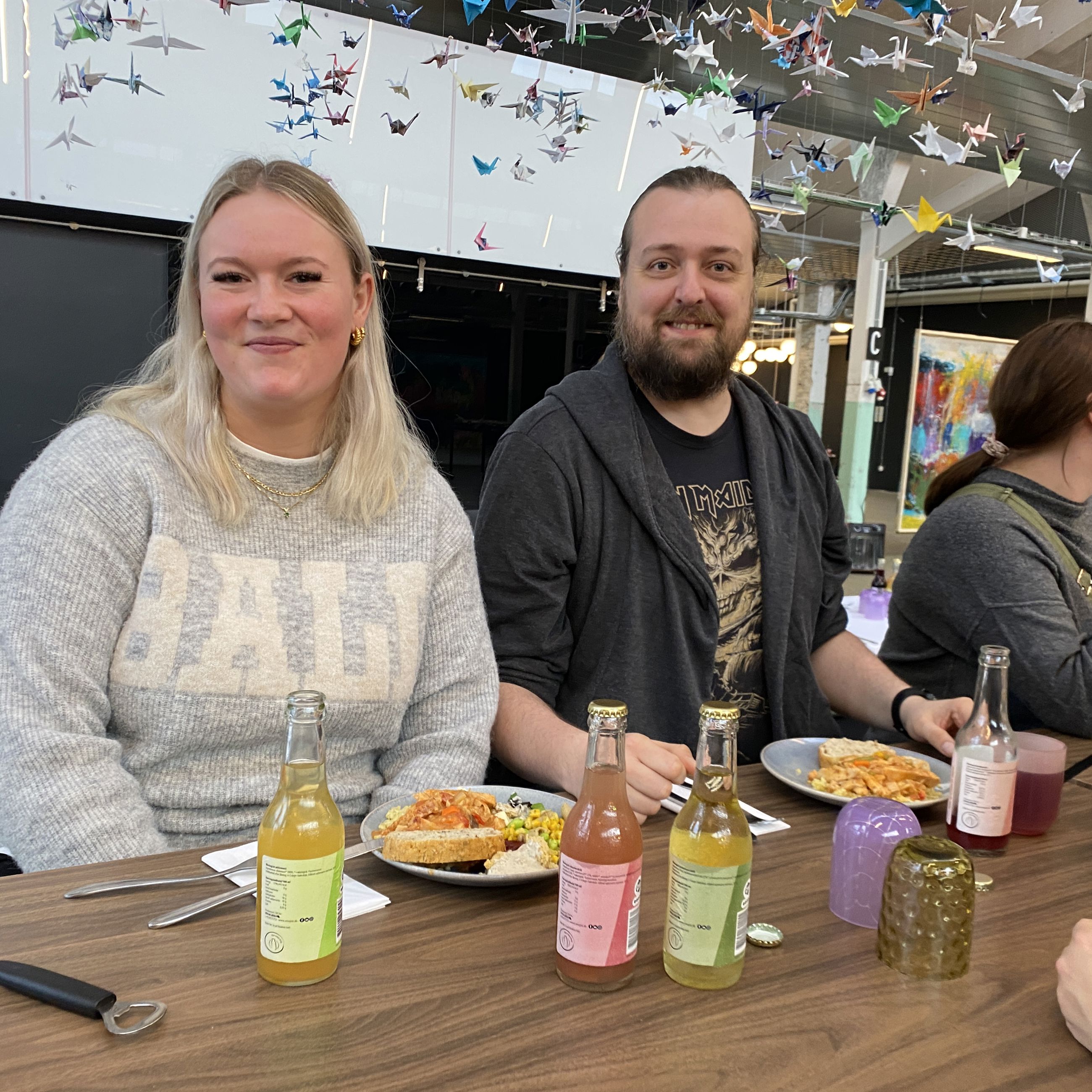 - Fællesskab med mening: Vi er utrolig glade for at sparre med hinanden. Der er opbakning til, at vi selv arrangerer fælles frokoster og mødes uden for arbejdstid. Det er fedt, at vi er mange elever sammen.