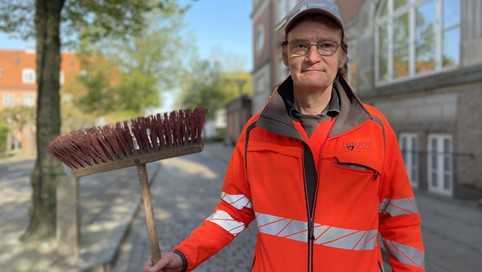 Jeg arbejder som bypedel, hvor jeg er med til at holde byen ren og indbydende. Jeg starter tidligt og sørger for, at gader, torve og byrum er pæne, inden byen for alvor vågner.