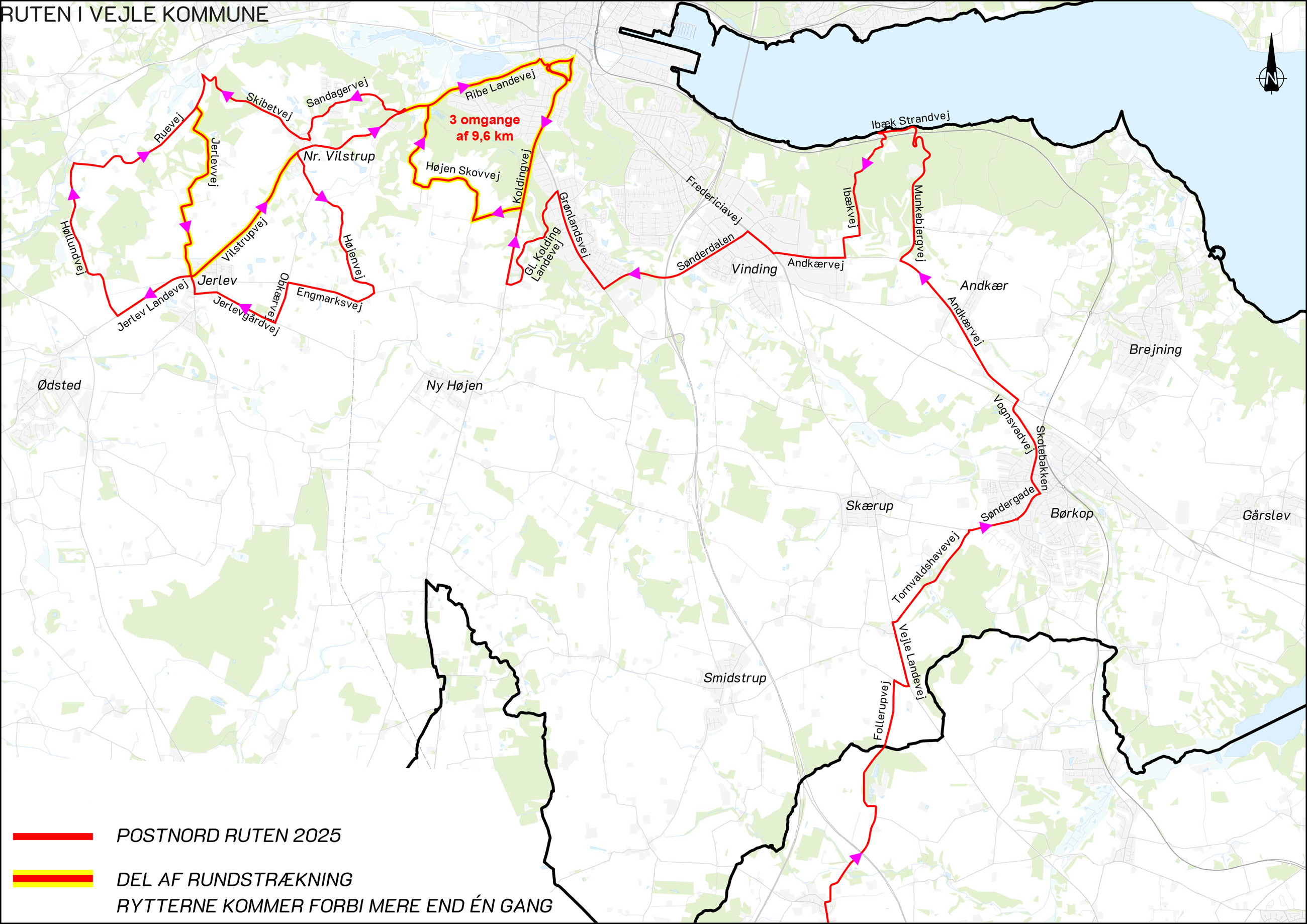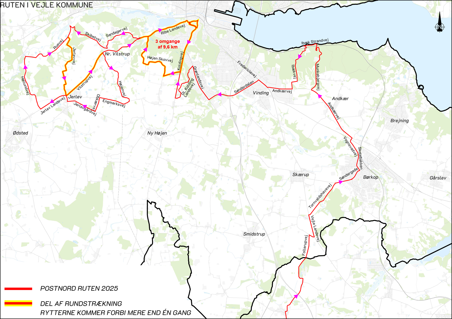 Den 15. august 2025 kommer PostNord Danmark Rundt til Vejle. Du kan derfor opleve midlertidige trafikale ændringer ved bl.a. Børkop, Munkebjerg og Jerlev.