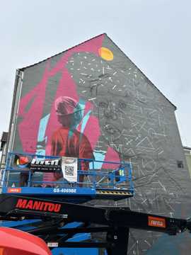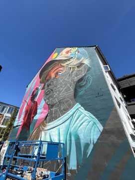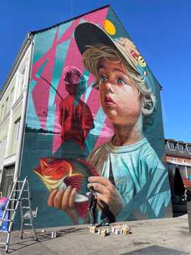 Oplev Ameds fascinerende vægmaleri på Dæmningen 46A i Vejle. En italiensk kunstner, der forener barndommens uskyld og naturens skønhed i et farverigt storskalaværk.