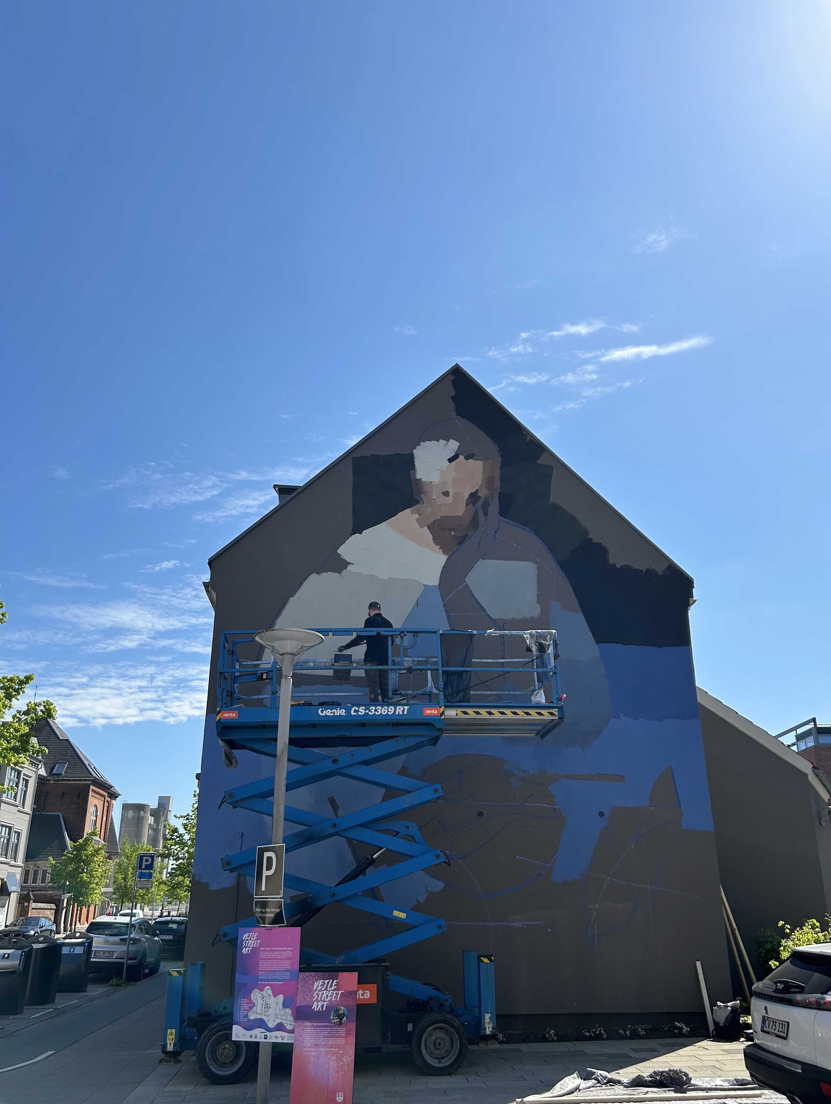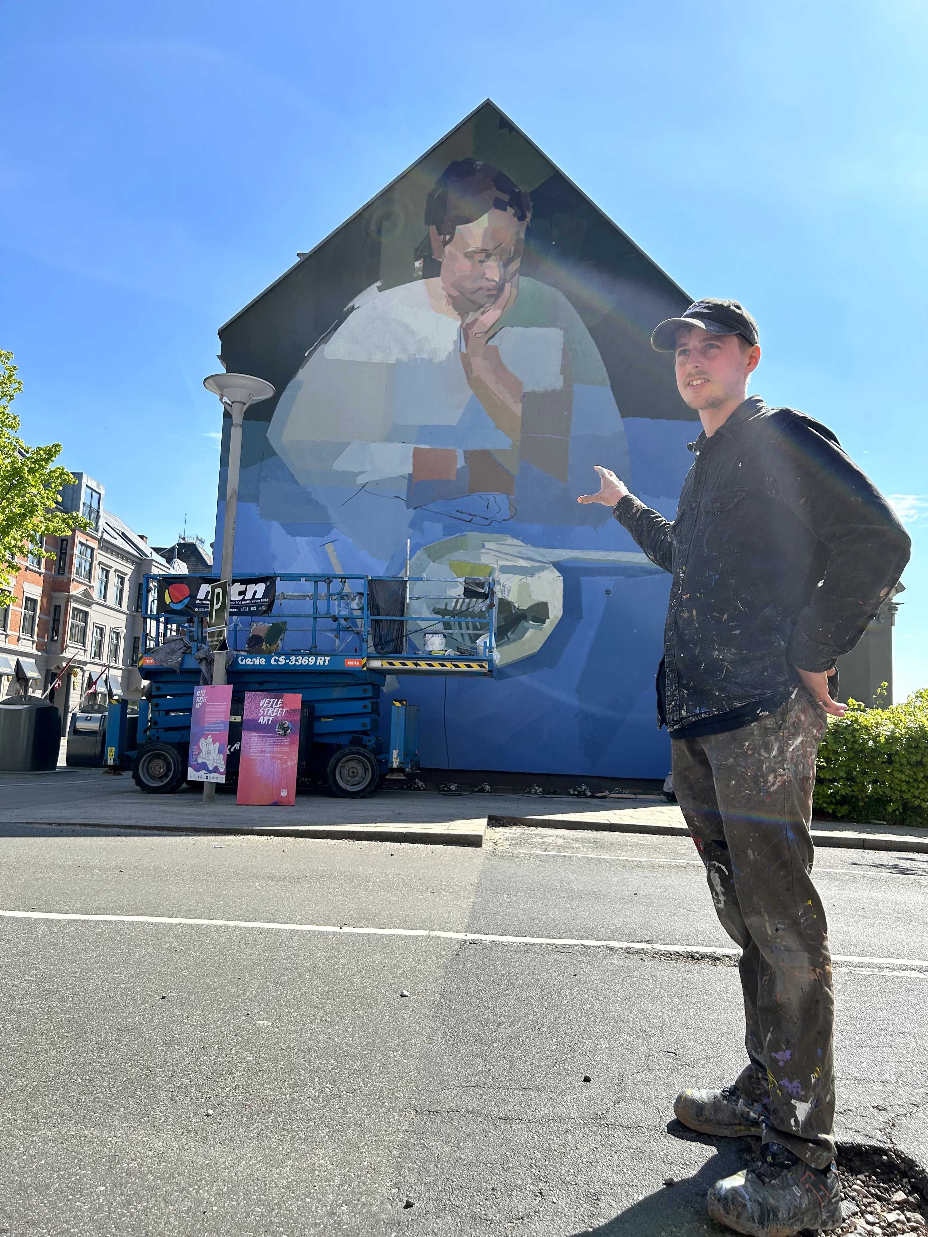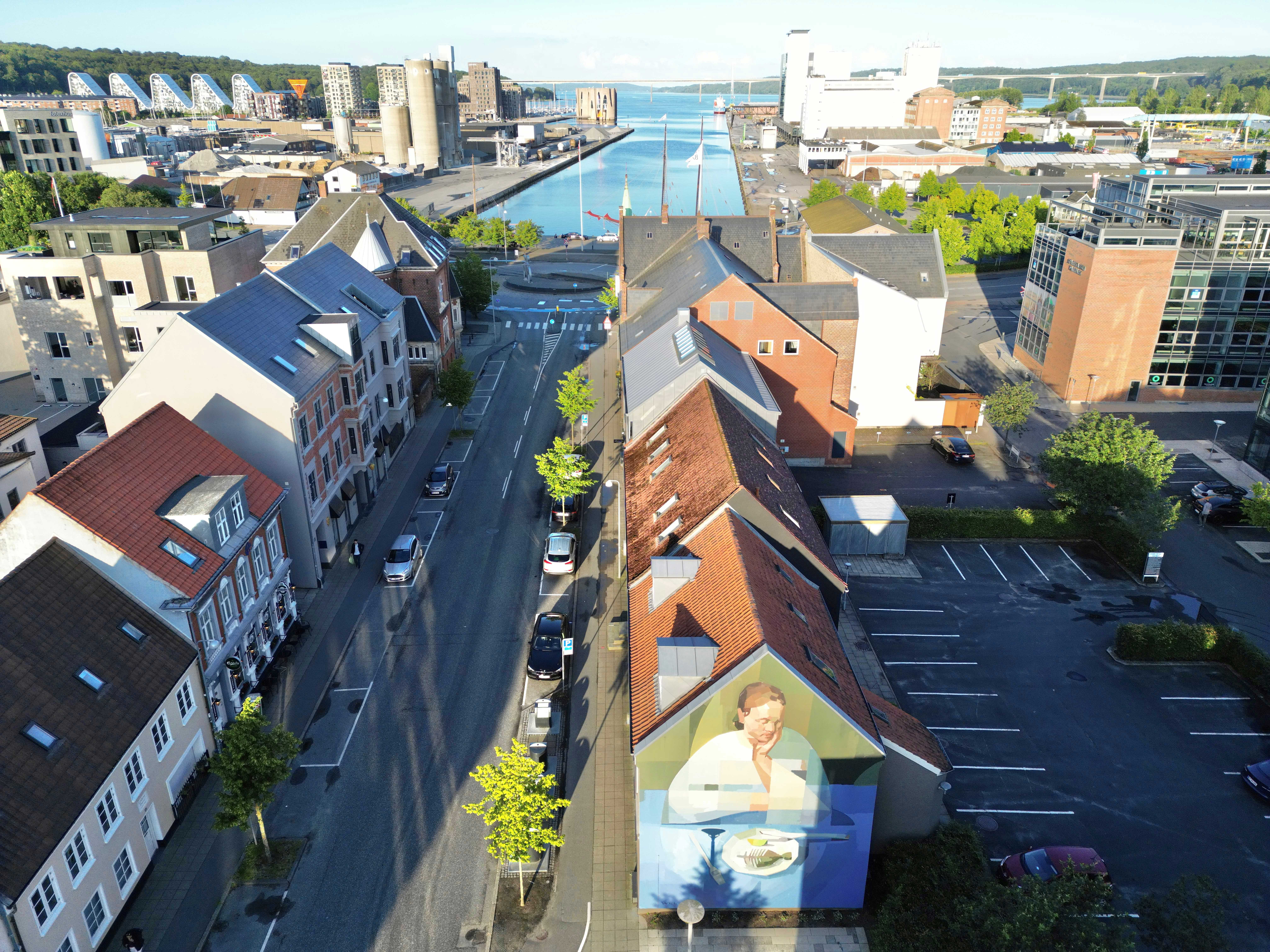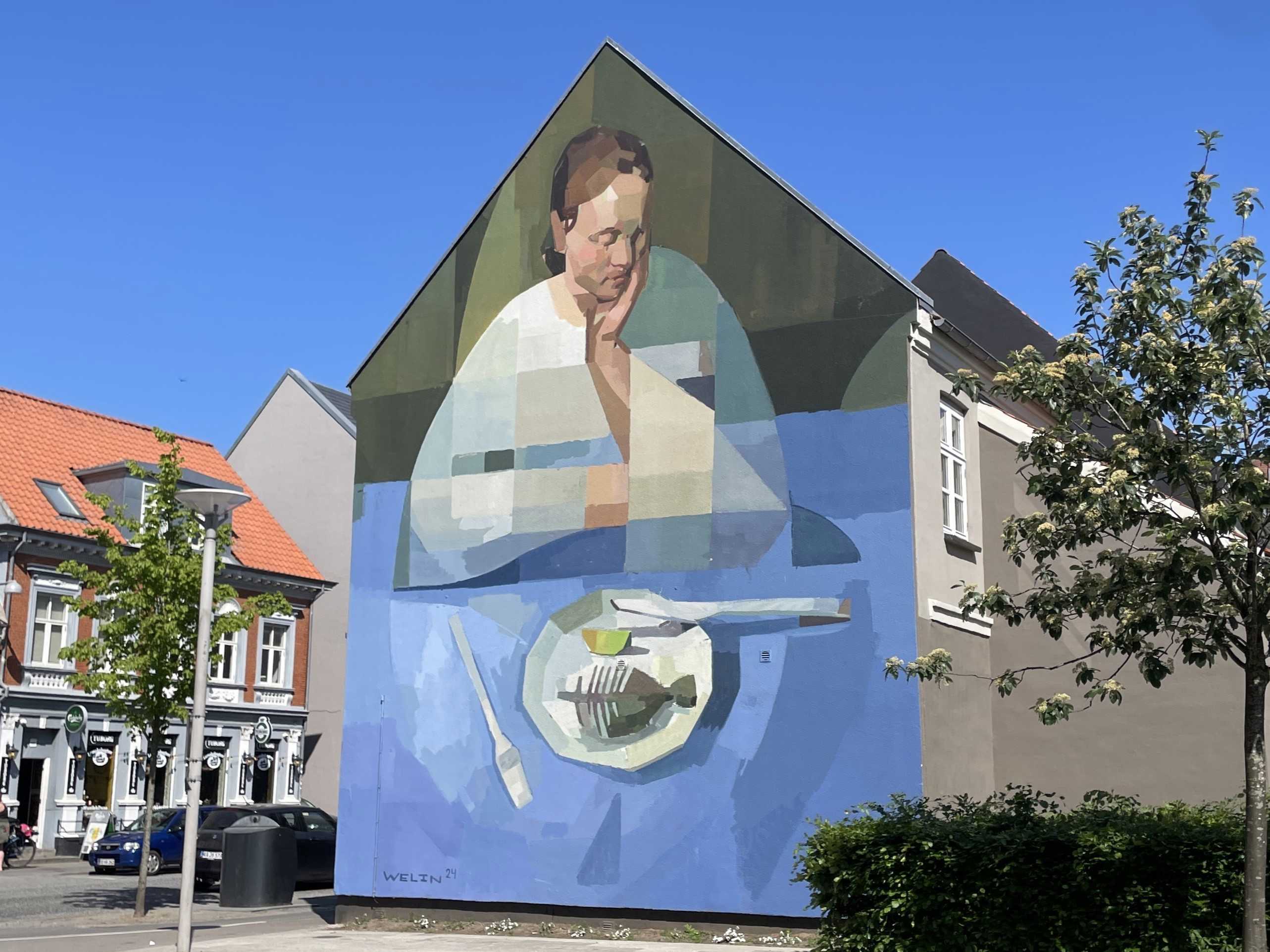Oplev Andreas Welins imponerende street art på gavlen på Havnegade 28 i Vejle. En international anderkendt kunstner, der i 2024 satte sit præg på Vejles byrum.