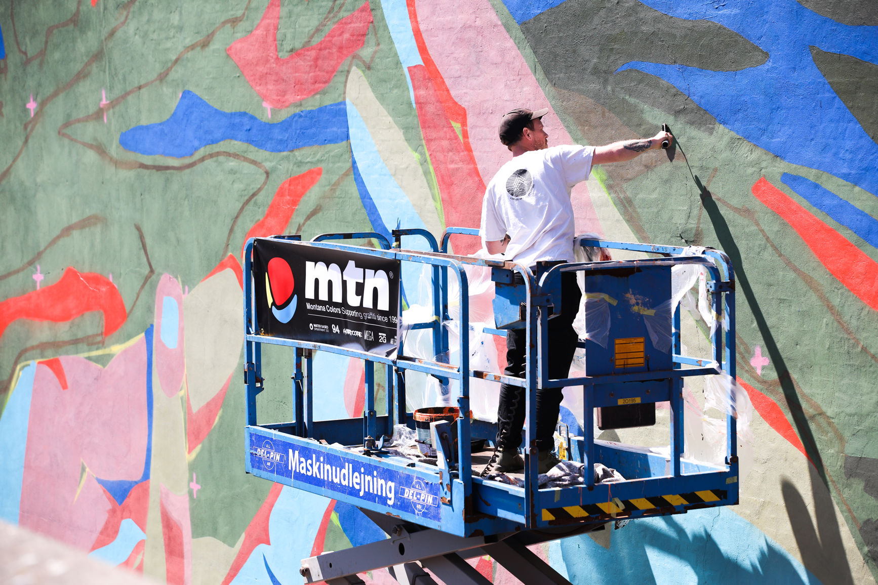 Oplev Bukhies abstrakte univers ved Anlæget 6 – en dynamisk fusion af typografi, former og urban kunst, der udfordrer og inspirerer.