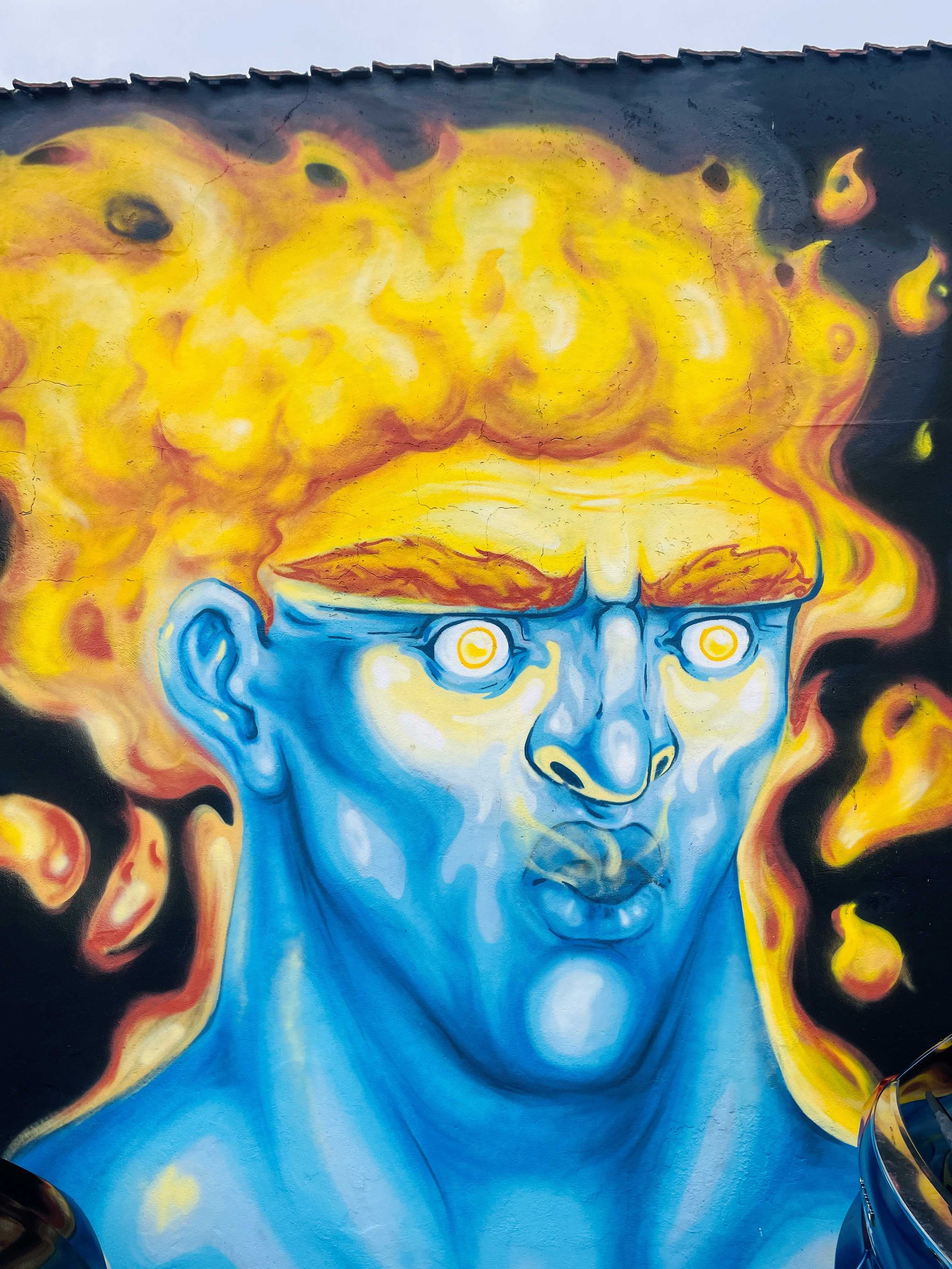 Oplev "Prometheus" af Danail Kraev på Nørregade 15-27 – et farverigt vægmaleri, der bringer myten om ilden og oplysning til live i Vejle.
