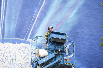 Oplev Eske Touborgs graffiti på Vedelsgade 18C – en kunstnerisk fusion af streetart og oliemaleri. Se værket af en innovativ kulturskaber.