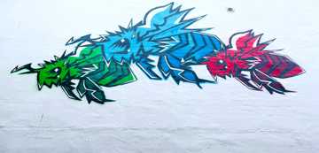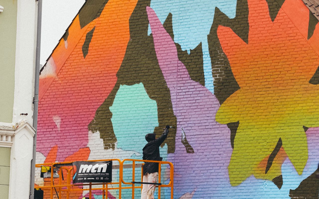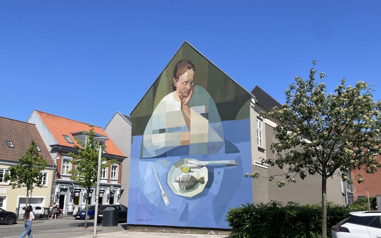 Oplev Facios farverige bier på passagen ved Nørregade 13 – et stærkt symbol på at give mere end man tager, skabt med moderne teknikker og et grafisk twist.