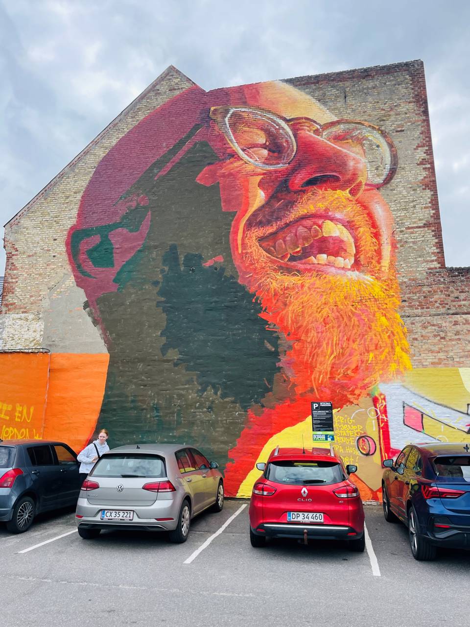 Oplev "Glæde" – Jens Stentofts fotorealistiske street art, hvor farver, humor og præcision mødes i et værk, der fanger øjet og fortæller en historie.