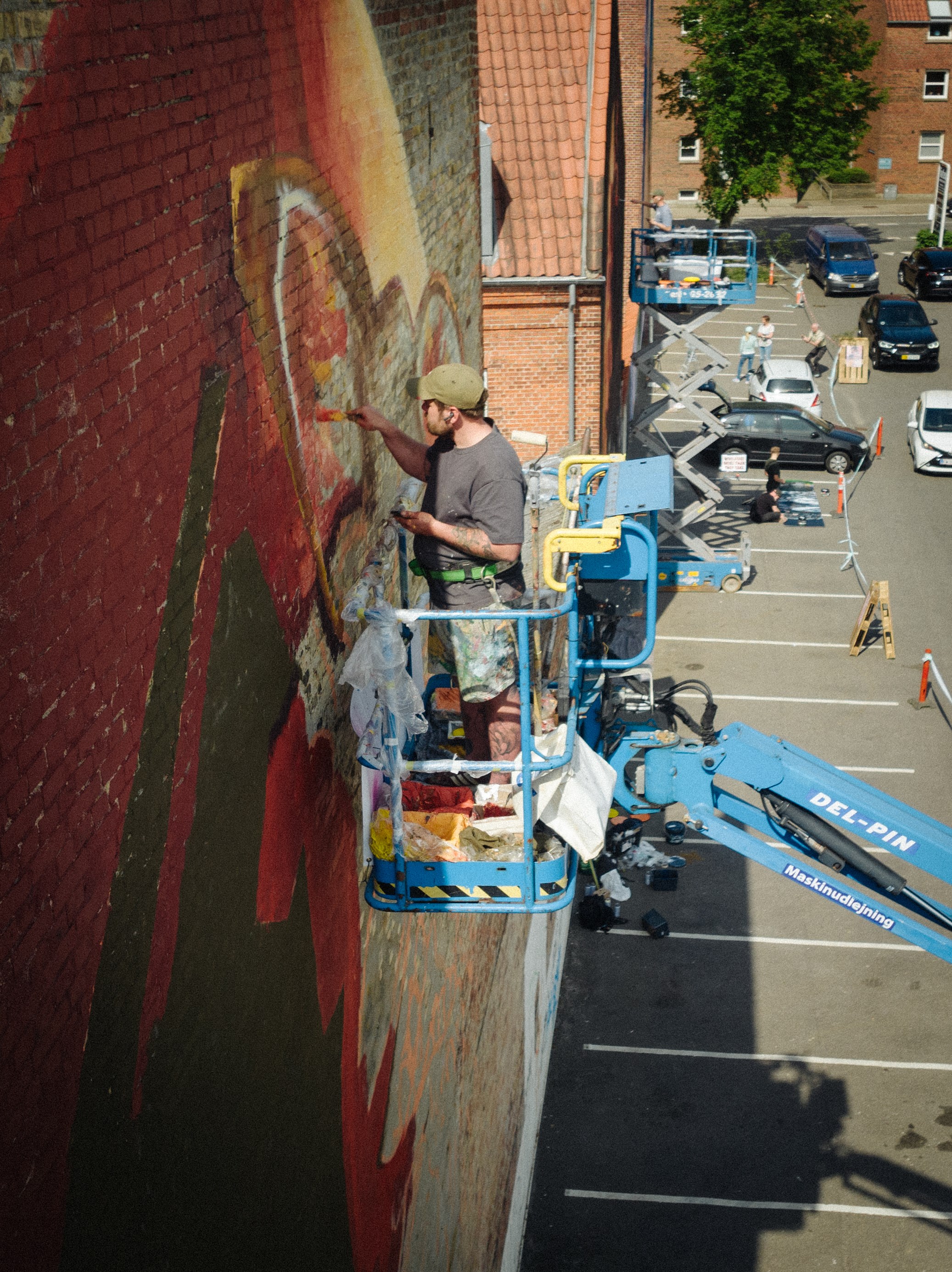 Oplev "Glæde" – Jens Stentofts fotorealistiske street art, hvor farver, humor og præcision mødes i et værk, der fanger øjet og fortæller en historie.