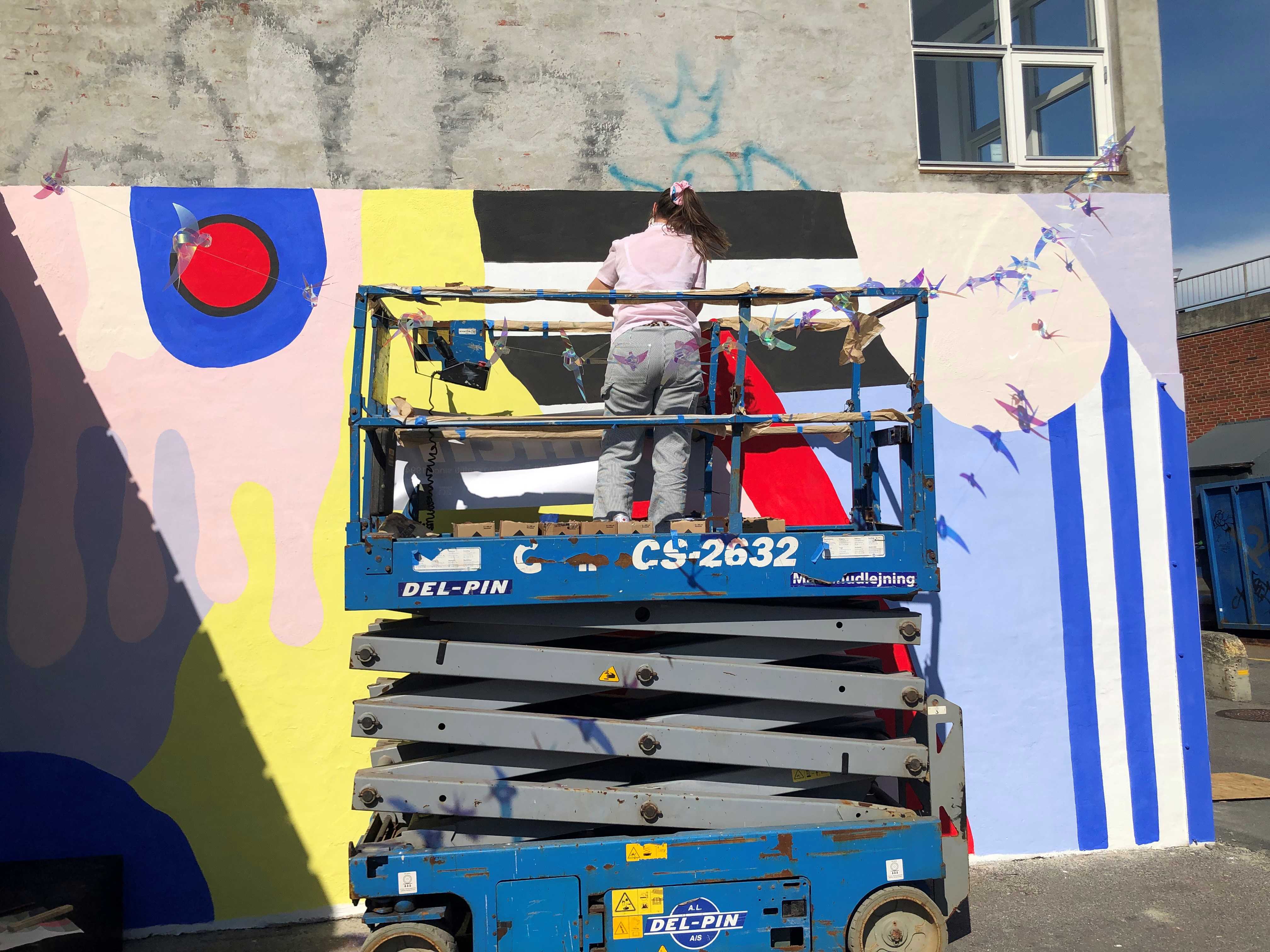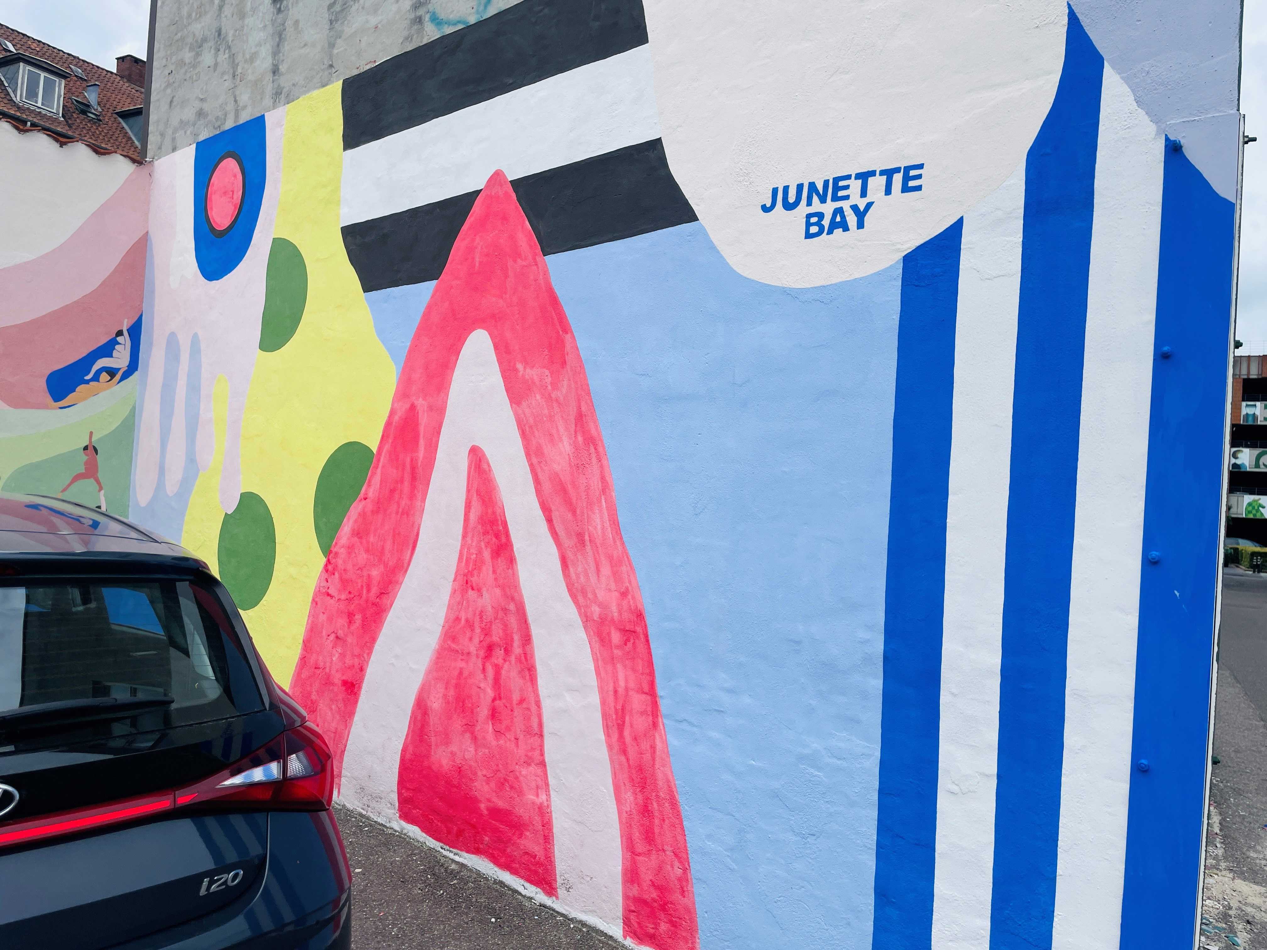 Oplev Junette Bays farverige vægkunst ved Anlæget 8-12 – et legende møde mellem pop-art og bæredygtighed, skabt for at sprede glæde og eftertanke.