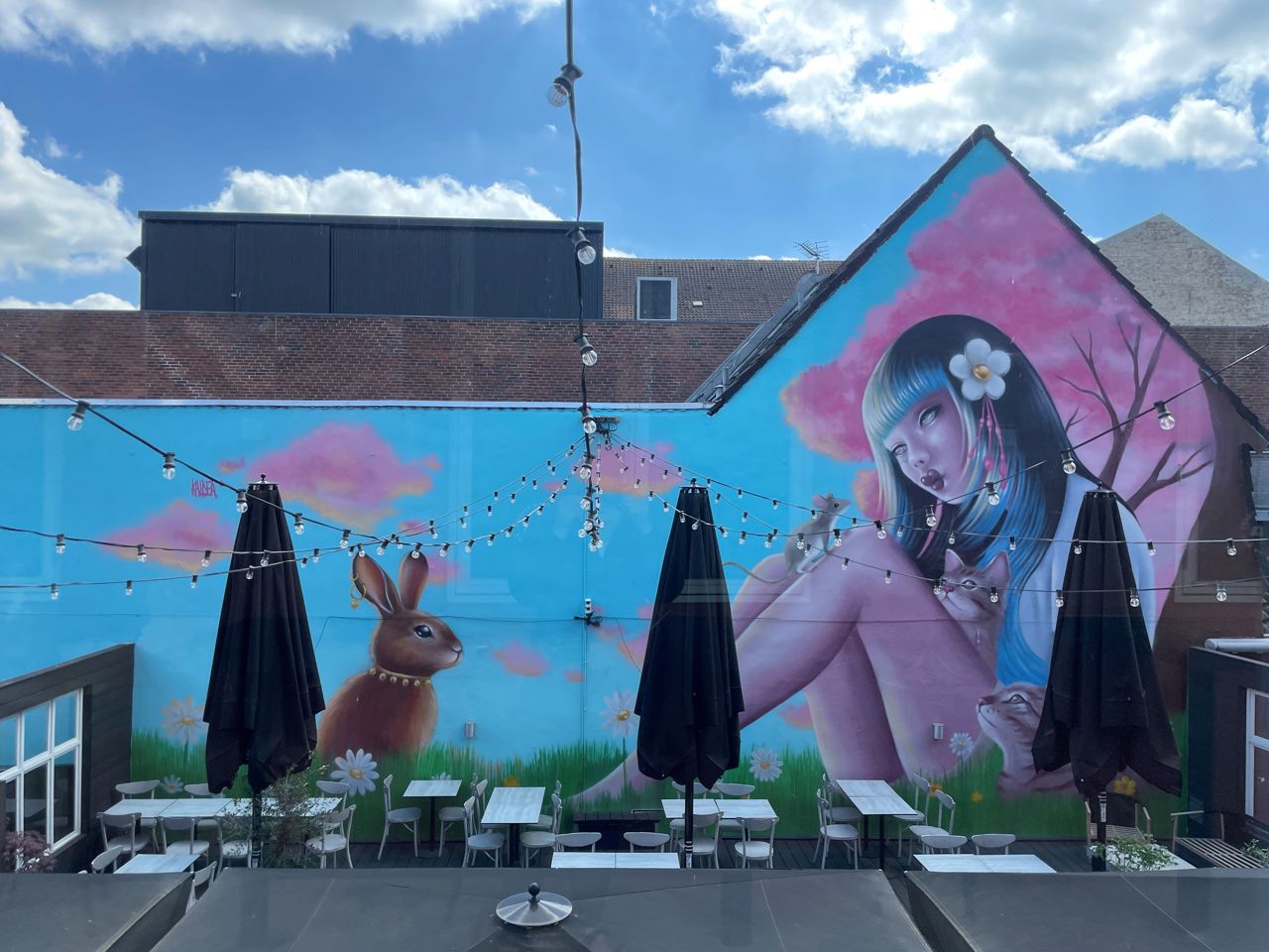 Oplev Kaldeas unikke kunst på væggen overfor Madindustrien i Vejle. En fransk kunstner, der forener asiatisk æstetik og Art Deco.