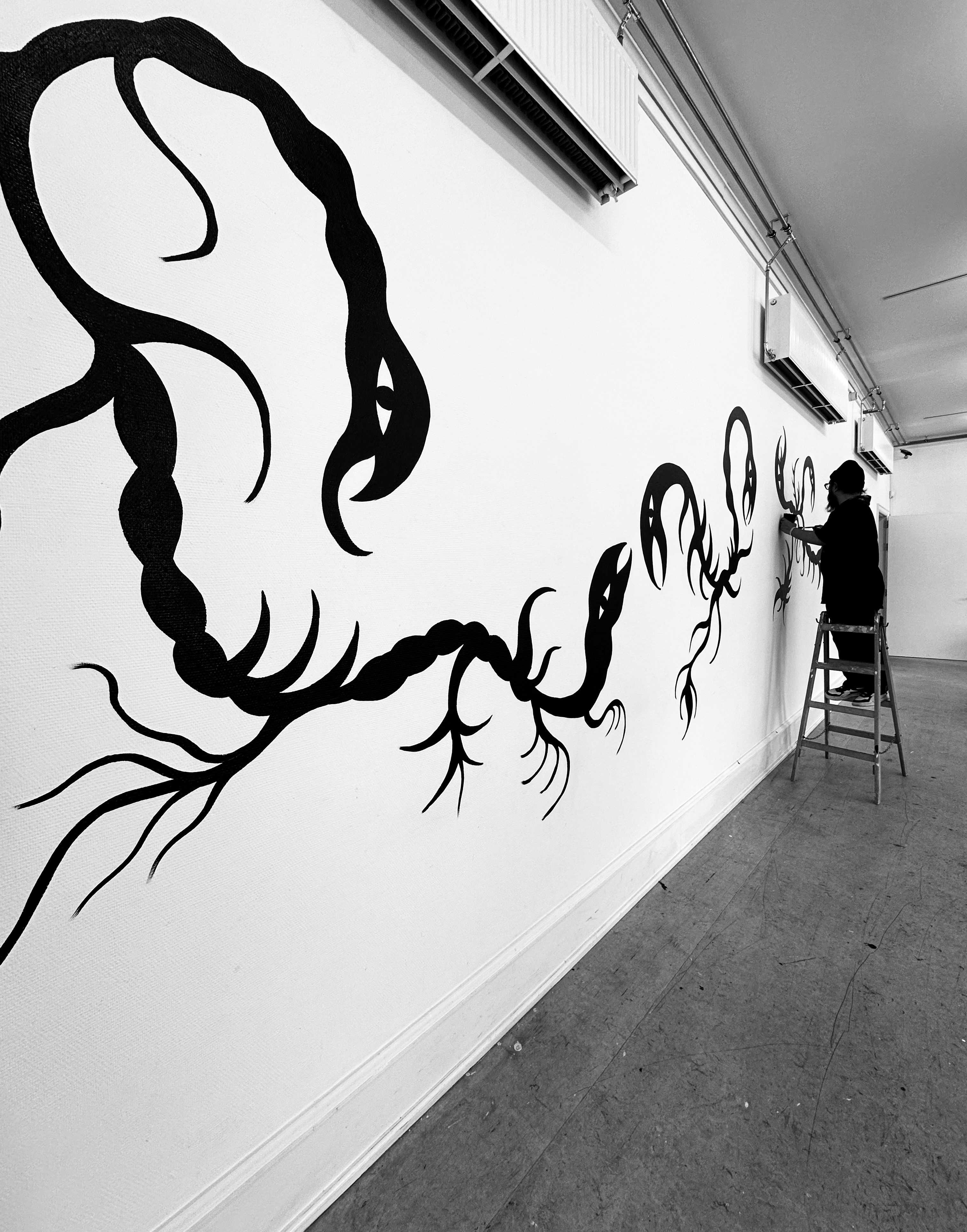 Phuc Van Dang was born in Vietnam and came to Denmark in 1981. Since childhood, he has lived in Horsens. He works locally, nationally, and internationally with his distinctive visual language that creates space for reflection. He explores themes such as identity, belonging, human nature, and social engagement. Through storytelling, he places the human element at the center of narratives that reflect on personal stories, social issues, and the movements shaping our culture today. His works are often characterized by the use of black lines that form visual fables and symbol-rich narratives. Phuc often engages his audience through live painting and workshops, where participants are invited to contribute and reflect. His art extends beyond the canvas and creates connections between people, places, and stories.