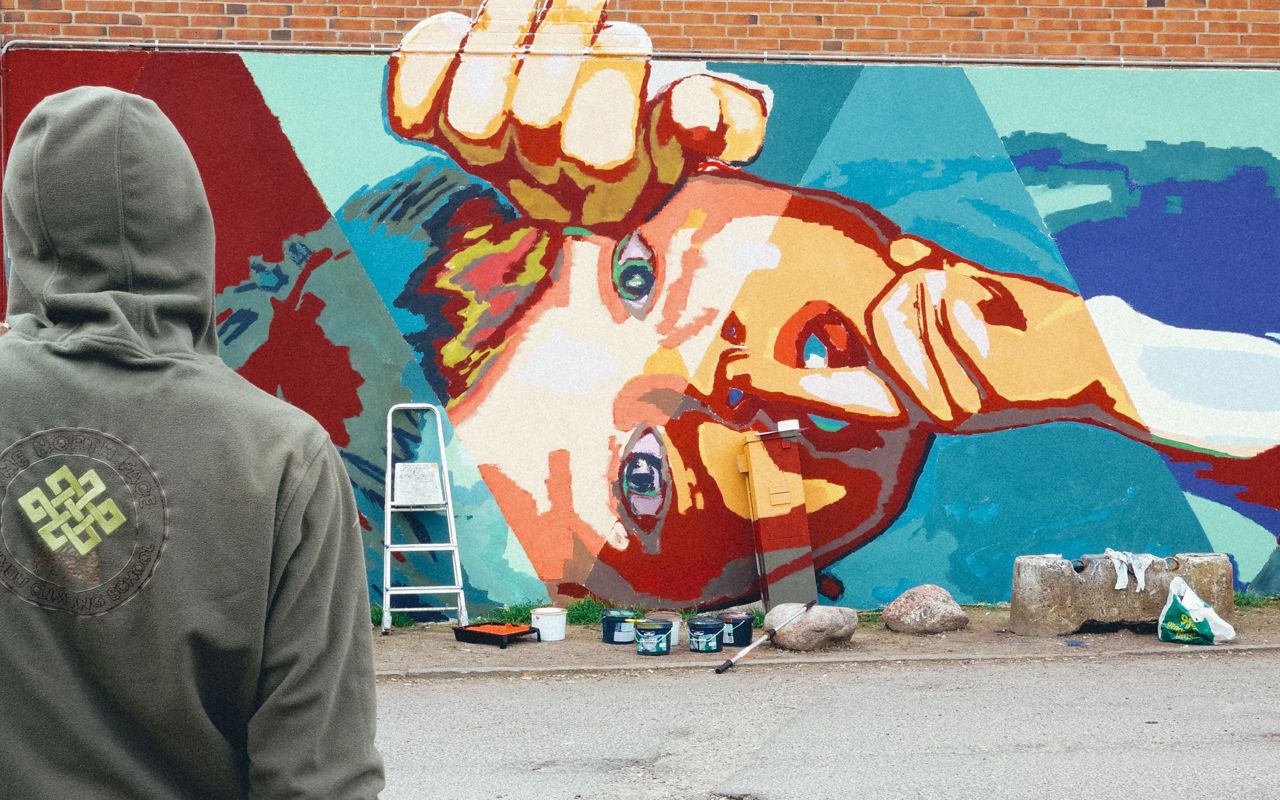 Rikke Lydeking has worked as an artist since 2013 when she did her first mural. She has created murals for private corporations as well as bars and cultural institutions. Rikke’s work reflects her interest in social and political relations. Her works question structures and tendencies in our society and invite the audience to contemplation and dialogue.