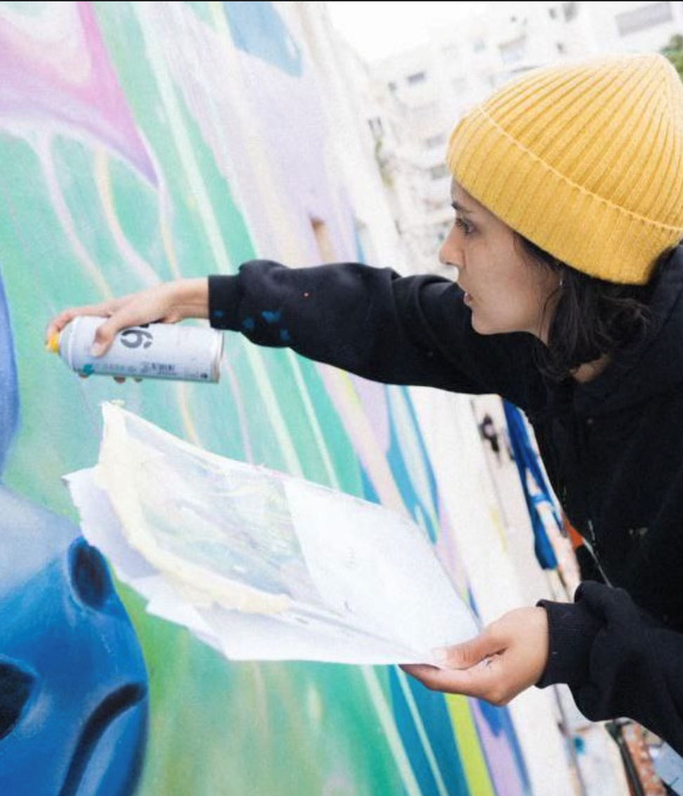 Rubis is a street artist and visual creator from Morocco. With a background in graphic and digital design, she works across different media—from large-scale murals to digital illustrations.