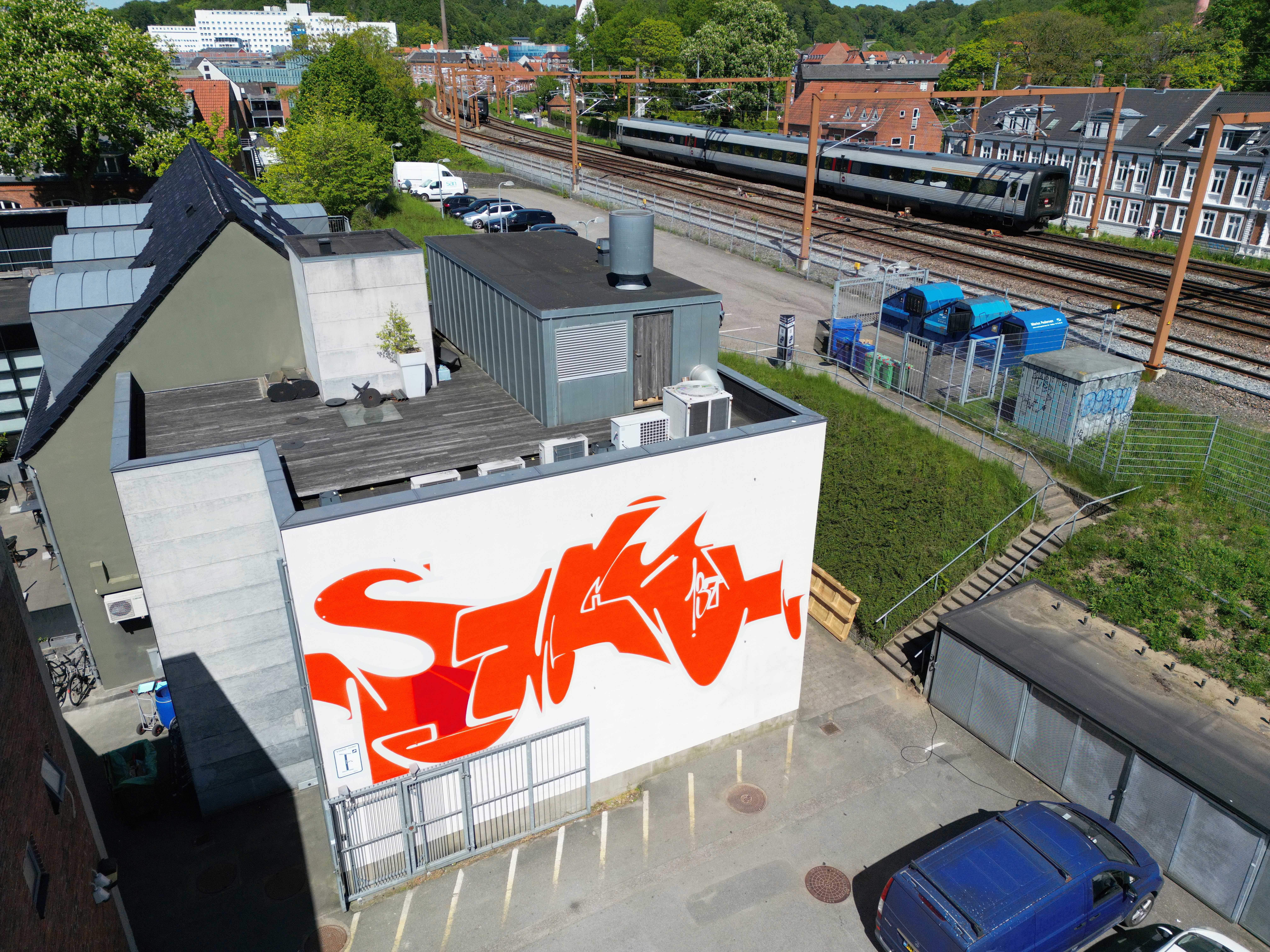Oplev Smash137's typografiske kunst på gavlen mod Nara Sushi i Vejle. En schweizisk kunstner, der fornyer graffitiens udtryk.