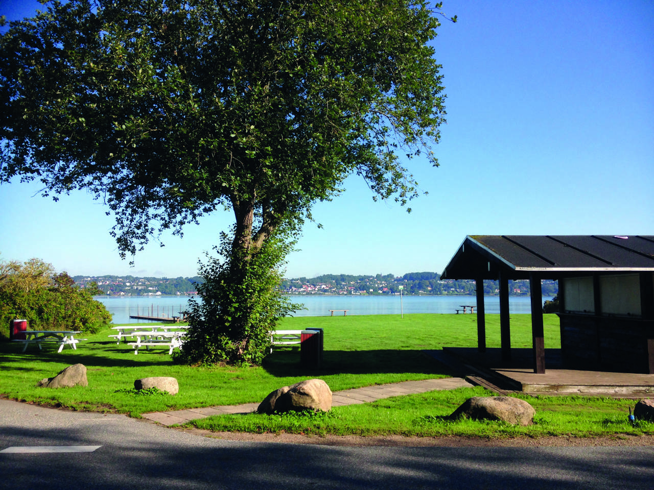 Fra terrassen på Munkebjerg Hotel kan du i dag nyde den storslåede udsigt og starte din skovtur ned ad