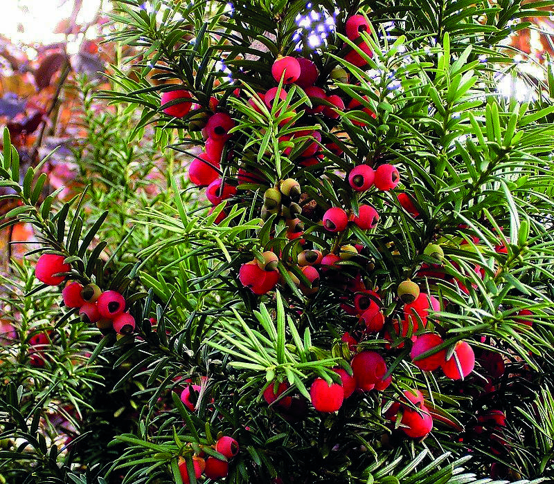 Taksen kan du se mellem Munkebjerg Hotel og stranden. Den vokser bedst, hvor jorden altid er fugtig. Bevoksningerne omkring Munkebjerg anses for at være de eneste oprindelige og vildtvoksende tilbage i Danmark.