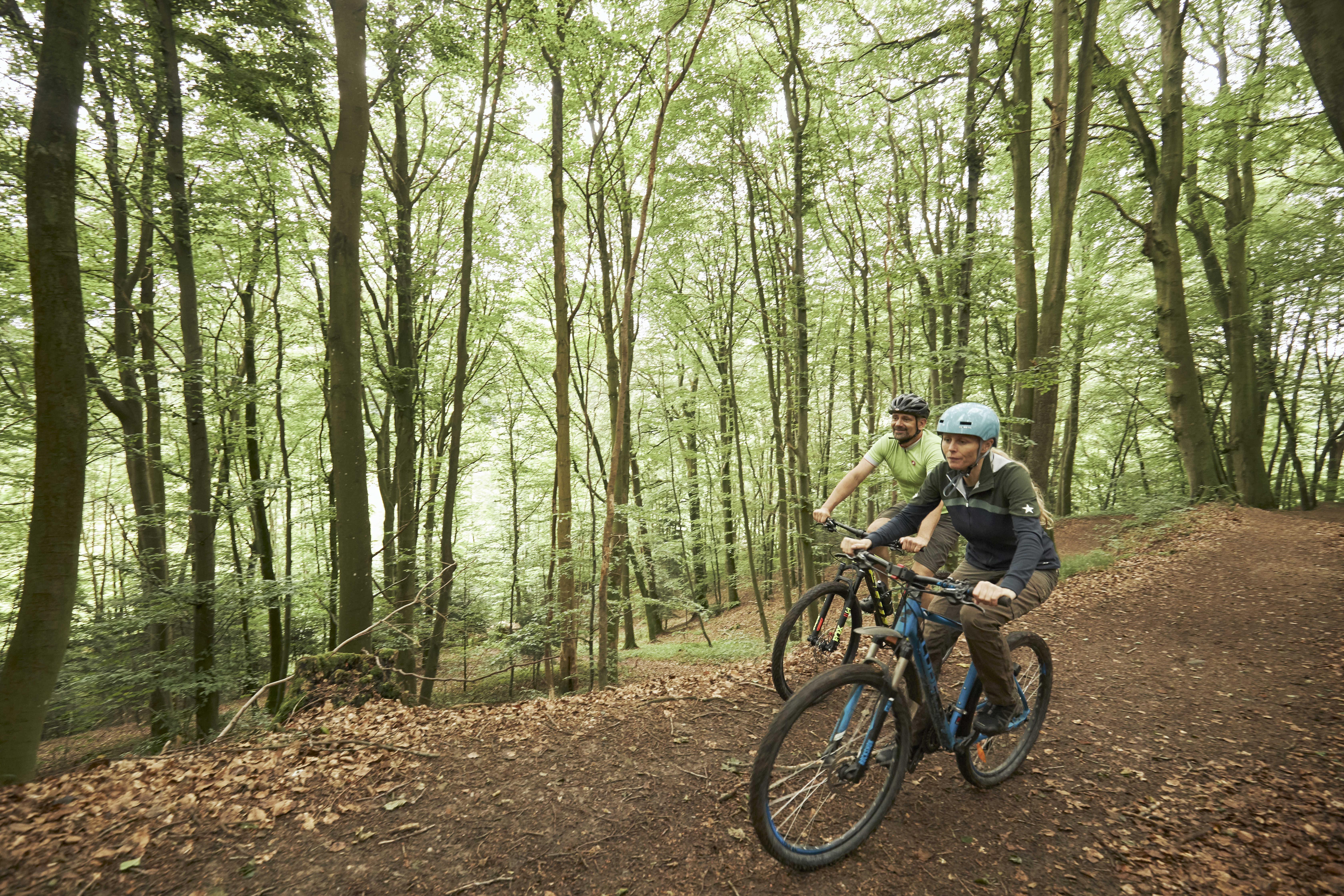 De mange bakker og skrænter byder på helt fantastiske MTB-spor i skovene omkring Vejle.