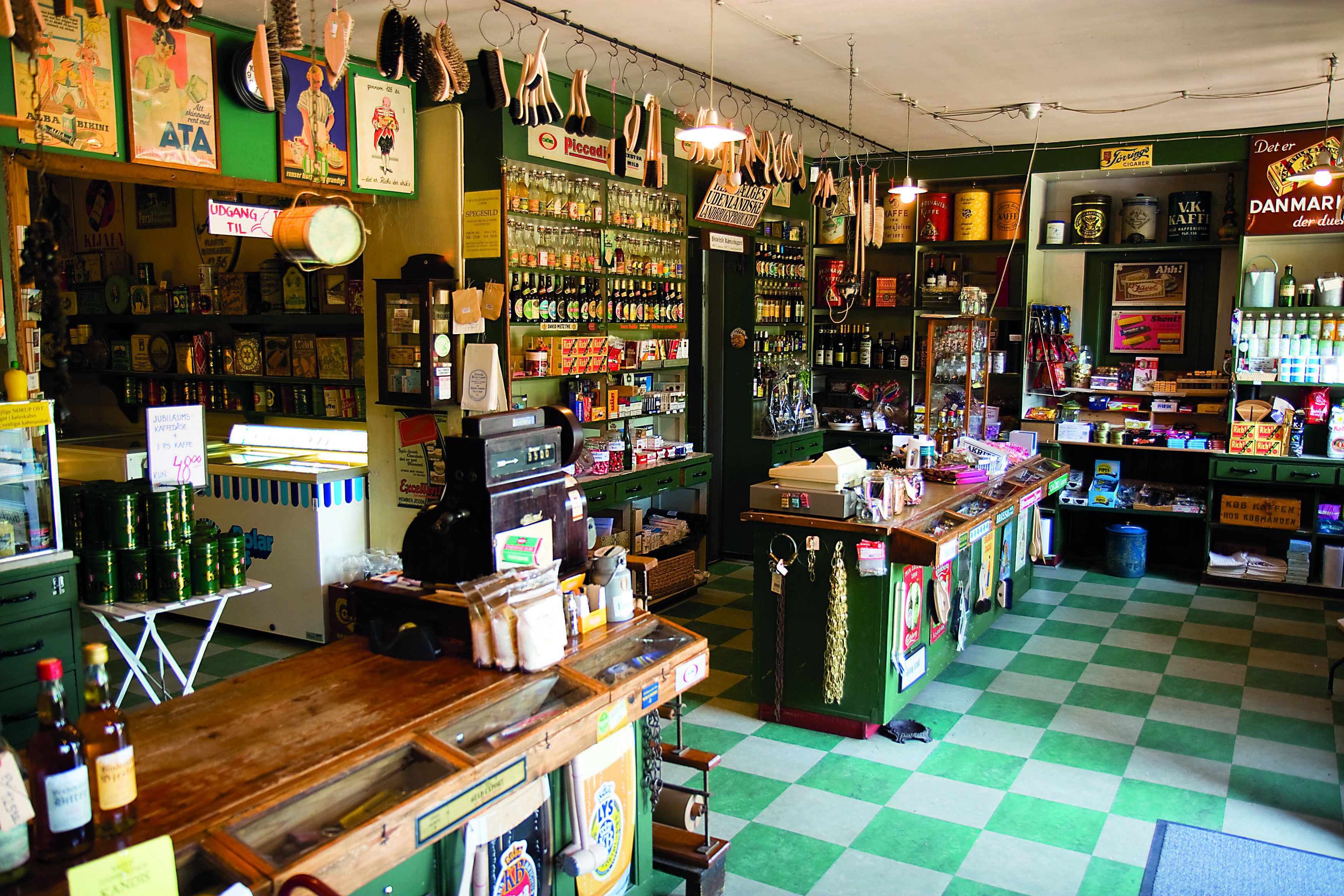 forretning med museum og café i et hyggeligt og afslappet miljø.