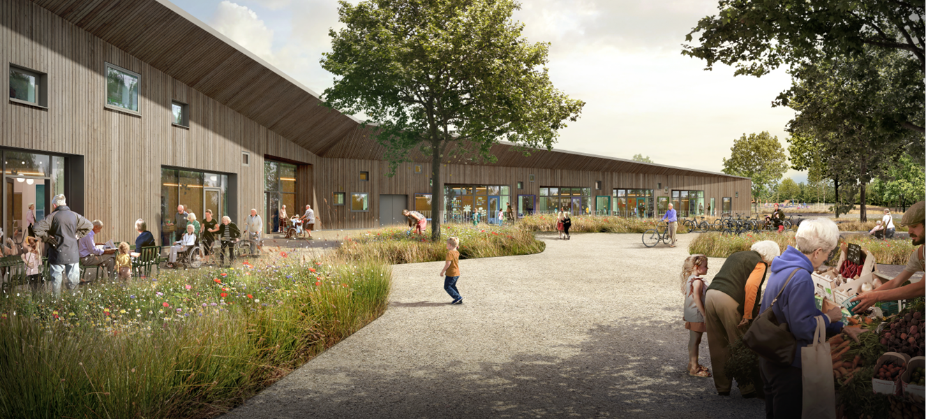 Kong Gauers Gård er også tænkt sammen tænkt ind i forhold til skole, hal og den øvrige by, blandt andet ved etablering af stier, som giver mulighed for naturlige møder med resten af byen.