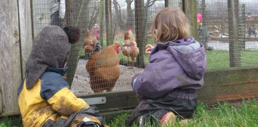 Vi holder dyr, som vi i fællesskab fodrer og muger ud ved. Vi får dyrebørn hvert forår og slagter dyrene om efteråret. Børnene oplever på denne måde dels omsorgen for dyrene og dels hvordan dyrene bliver til fødevarer.
