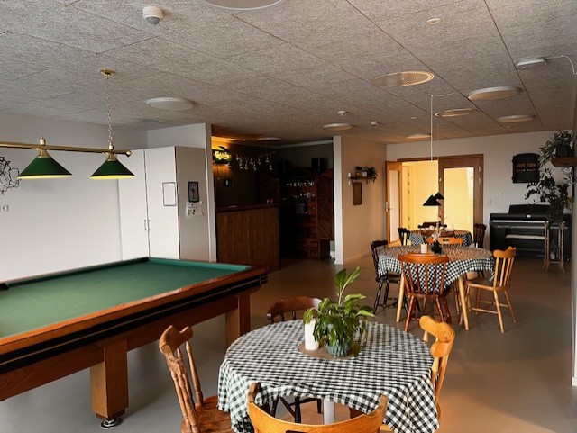 I vores hyggelige bodega kan du altid kigge forbi til en kop kaffe og en god snak. Her står også vores store billardbord, som du frit kan benytte. Derudover har vi et kreativt værksted til træarbejde og andre spændende projekter.