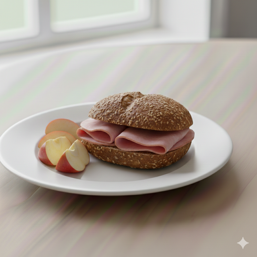 - Servér grovbollen med æblebåde og 1 glas mælk hertil.