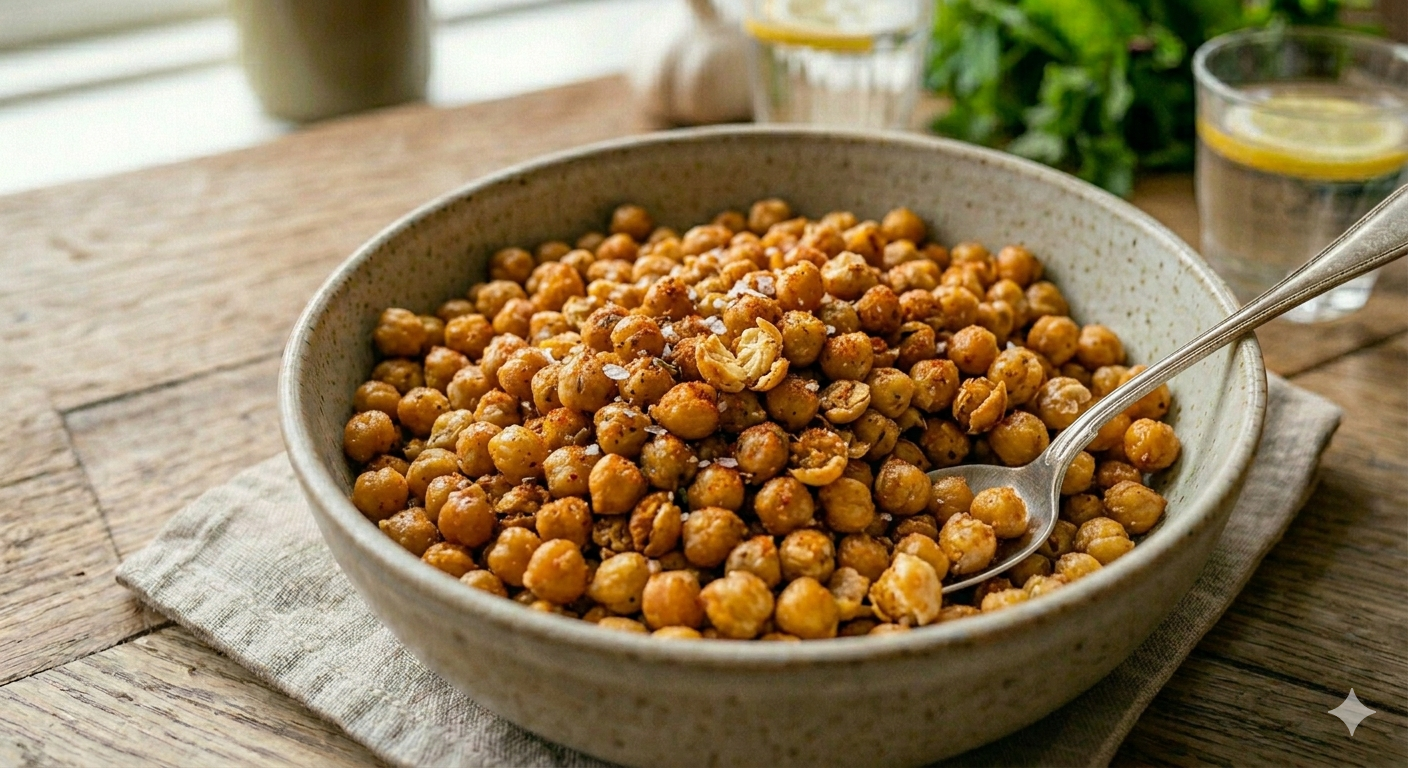 Drys det ønskede krydderi og salt over kikærterne, og bland det hele godt sammen med en ske.