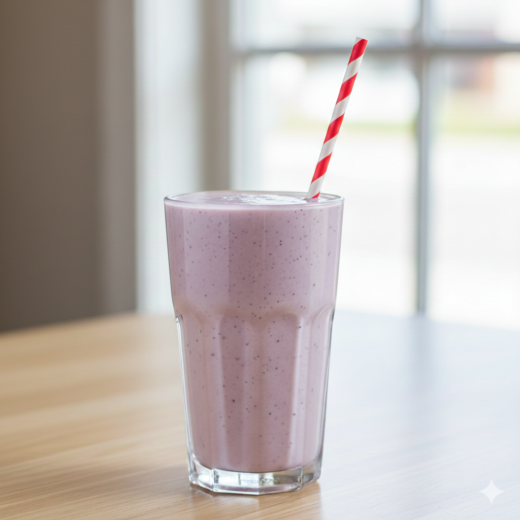 - Kom alle ingredienser i en blender og blend indtil milkshaken har en ensartet konsistens.