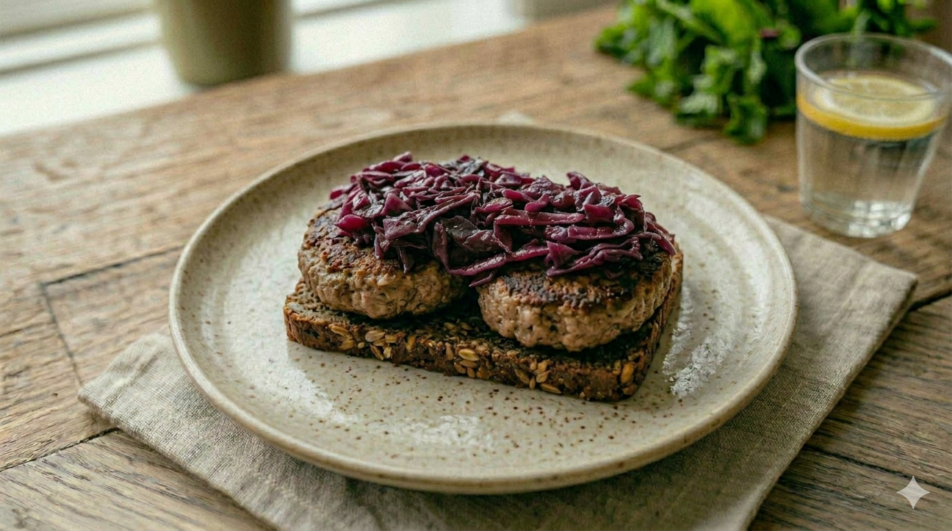 Rugbrød med frikadelle og rødkål (Kold)