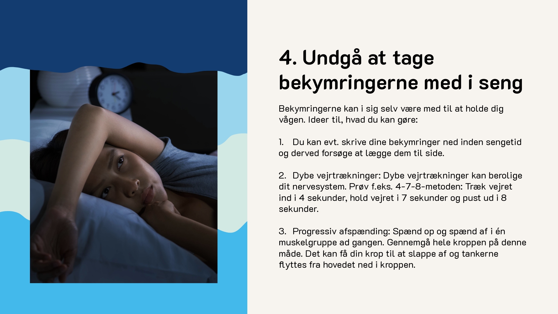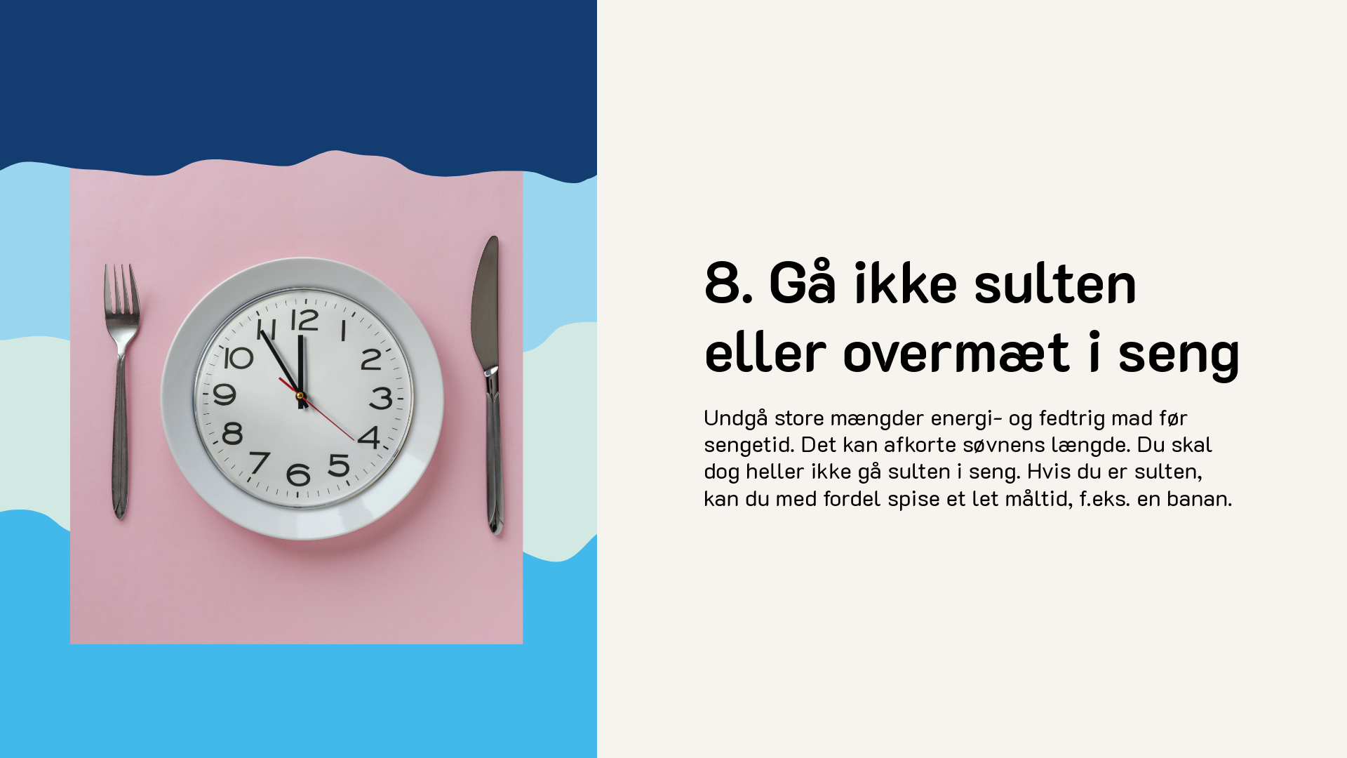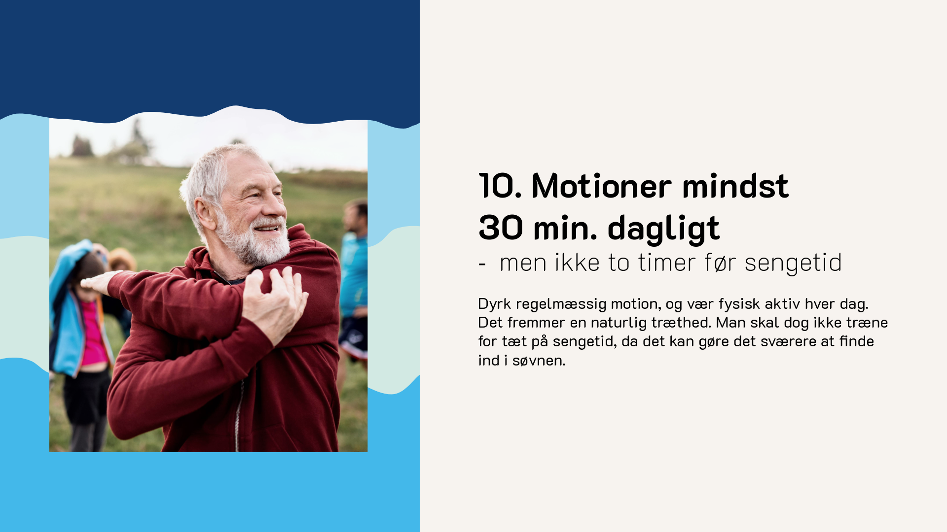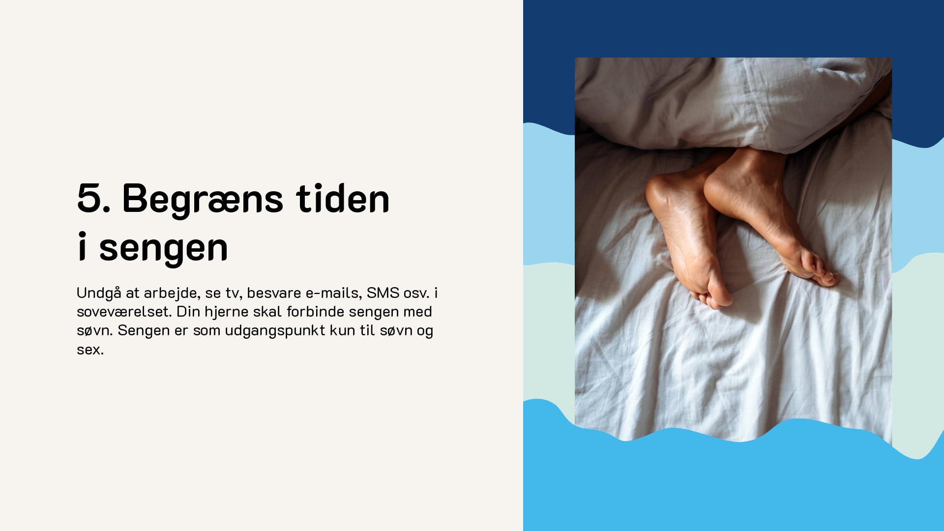 - Give dig viden om gode vaner inden sengetid og konkrete tiltag, der kan være med til at forbedre din søvn.