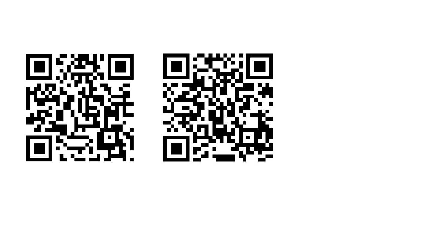 QR-kode til spørgeskema om reaktioner på at vente barn/blive forældre (Dansk på venstre side, engelsk på højre side). Spørgeskemaet kan også udfyldes ved at trykke på ovenstående link. Bør først benyttes 14 dage før det planlagte besøg.