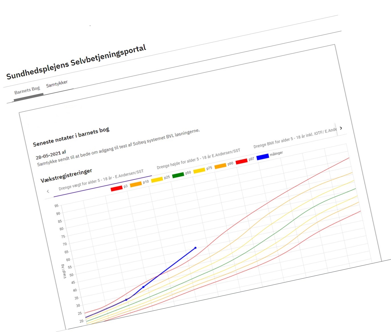 I Barnets bog kan du se dine fremtidige aftaler med Sundhedsplejen, du kan følge dit barns vækstkurve og se noter omkring barnet. Du skal logge ind via linket nedenfor.